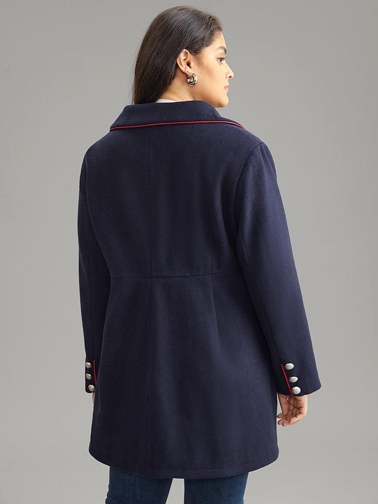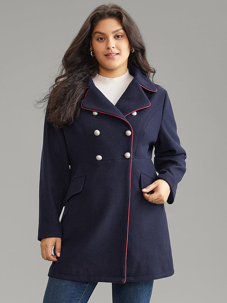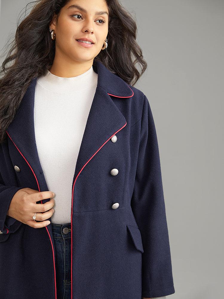 Shop Contrast Trim Buckle Detail Flap Pocket Lapel Collar Coat now and redefine your style with confidence at BloomChic. Tailored for mid and plus-size women. This trendy Outerwear Women, sizes 10-30. Season:Winter;Color:Indigo;Style:Casual;Pattern Type:Plain;Details:Button, Pocket, Contrast, Lined;Pocket:It is perfectly sized to carry a phone.;Belt:No-belt;Closure Type:Button;Lining:Lining