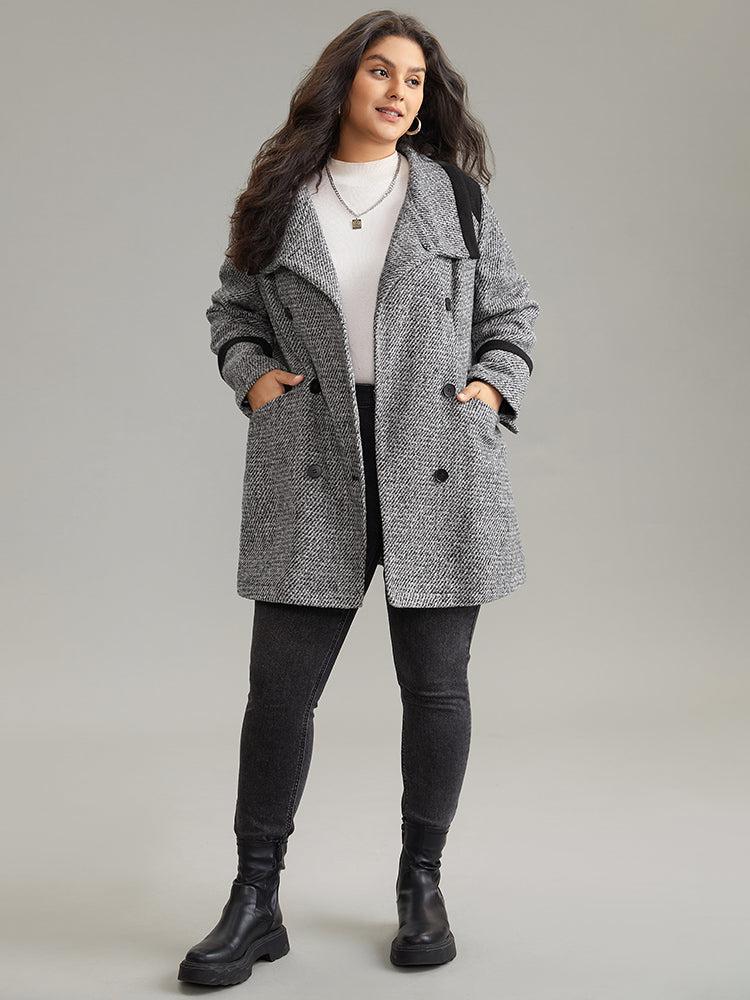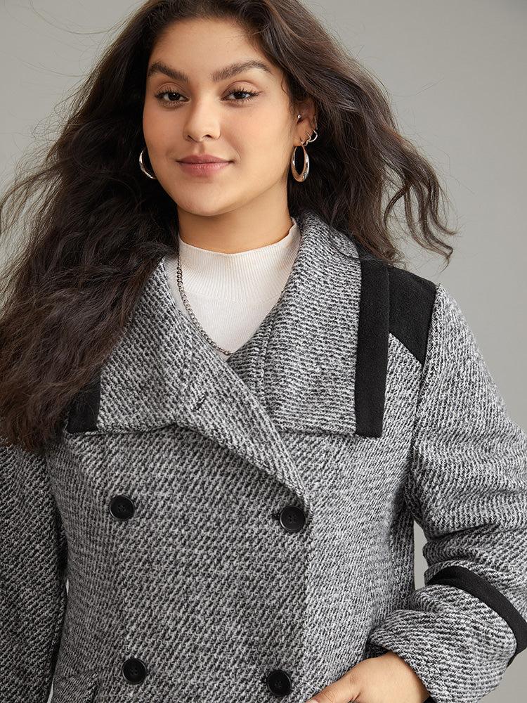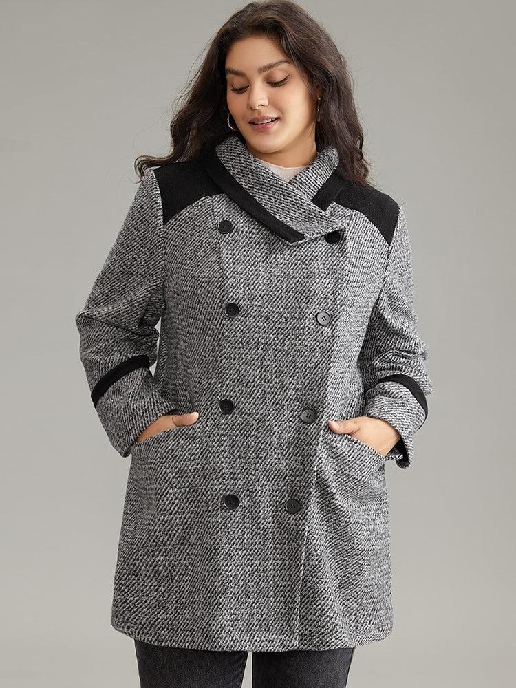 Shop Contrast Tweed Double Breasted Flap Pocket Coat now and redefine your style with confidence at BloomChic. Tailored for mid and plus-size women. This trendy Outerwear Women, sizes 10-30. Season:Winter;Color:DimGray;Style:Casual;Pattern Type:Plain;Details:Pocket, Button, Patchwork, Contrast, Lined;Pocket:It is perfectly sized to carry a phone.;Belt:No-belt;Closure Type:Button;Lining:Lining