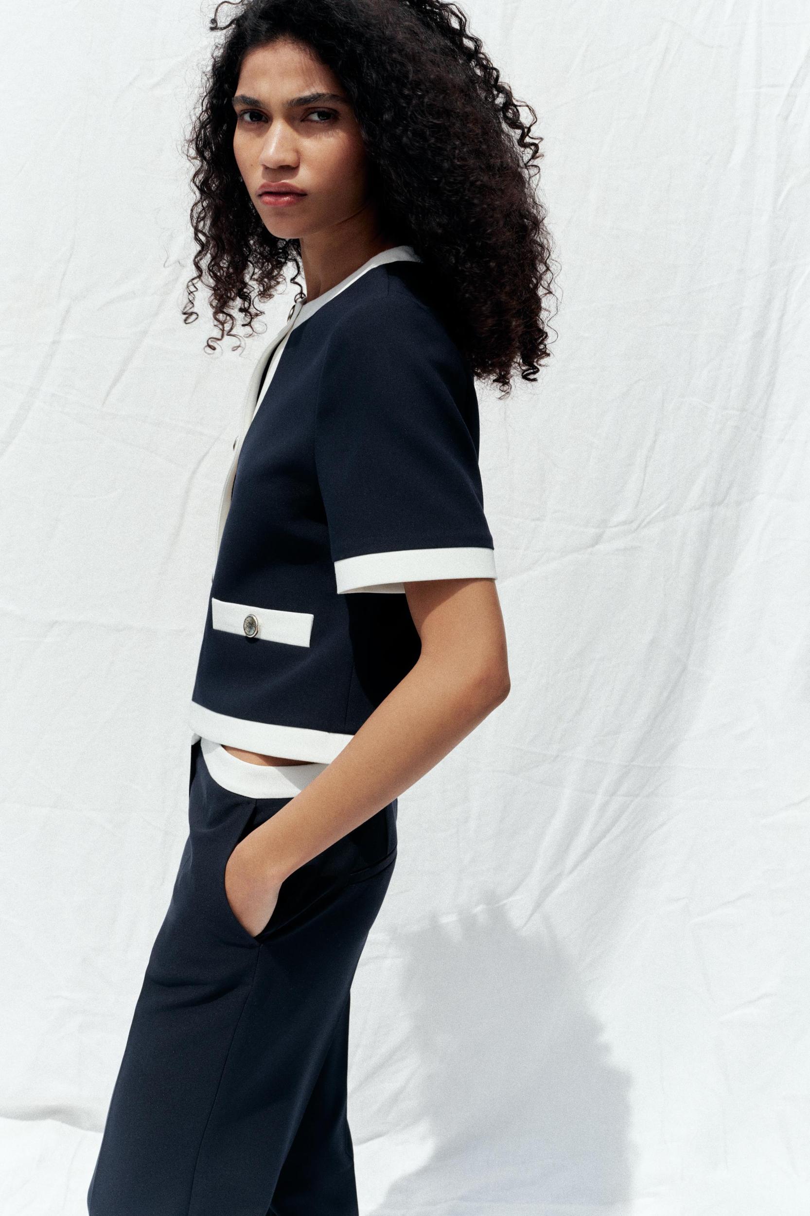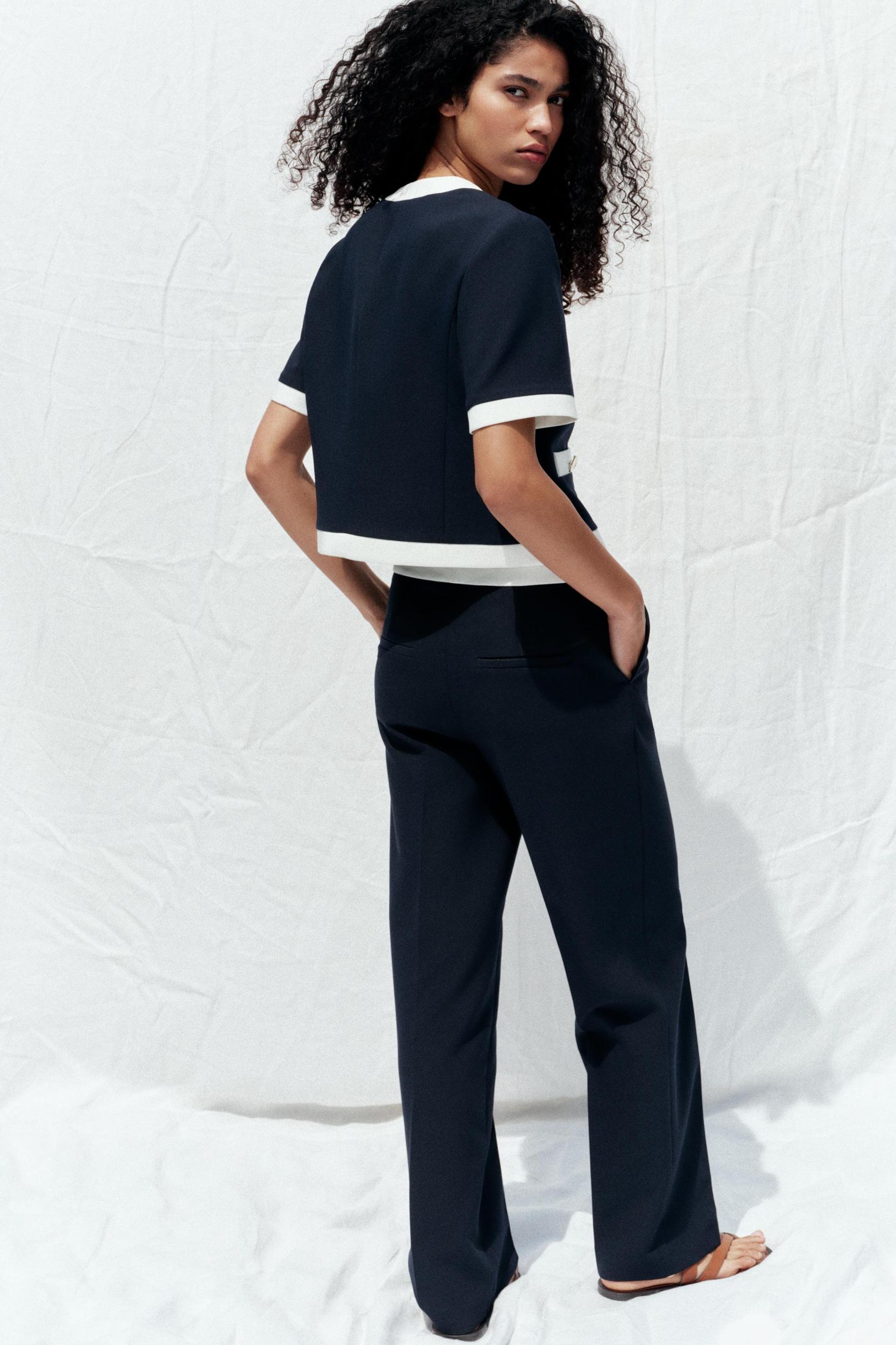 CONTRAST WAIST STRAIGHT LEG PANTS