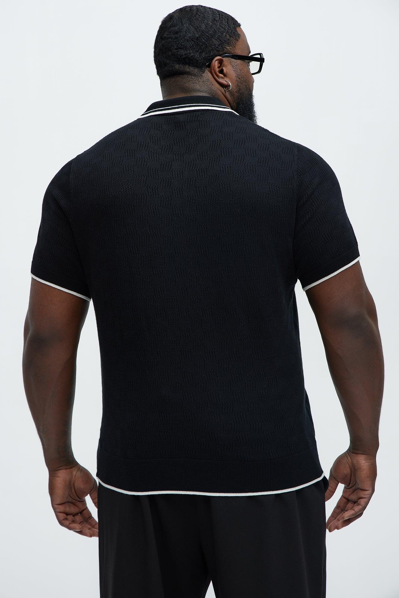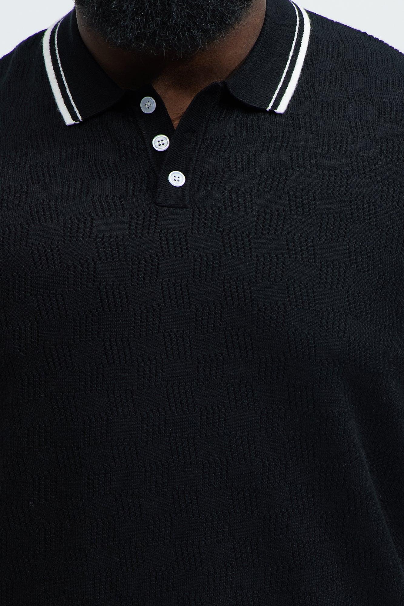 Available In Black/combo. Button Down Collar Ribbed Collar Contrast Trim Textured Open Knit Ribbed Hem Ribbed Cuffs Short Sleeve 50% Viscose, 28% Polyester, 22% Nylon Disclaimer: This garment has been made with delicate materials and may snag or pull if jewelry or watches are worn. Do not wash with items that may cause snagging such as zippers or hooks. This garement is unique and must be handled with care. Imported