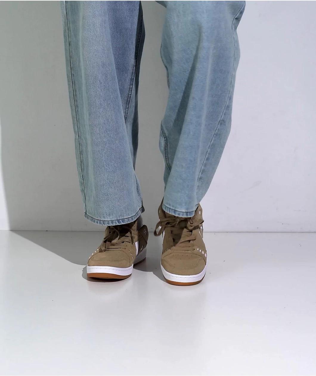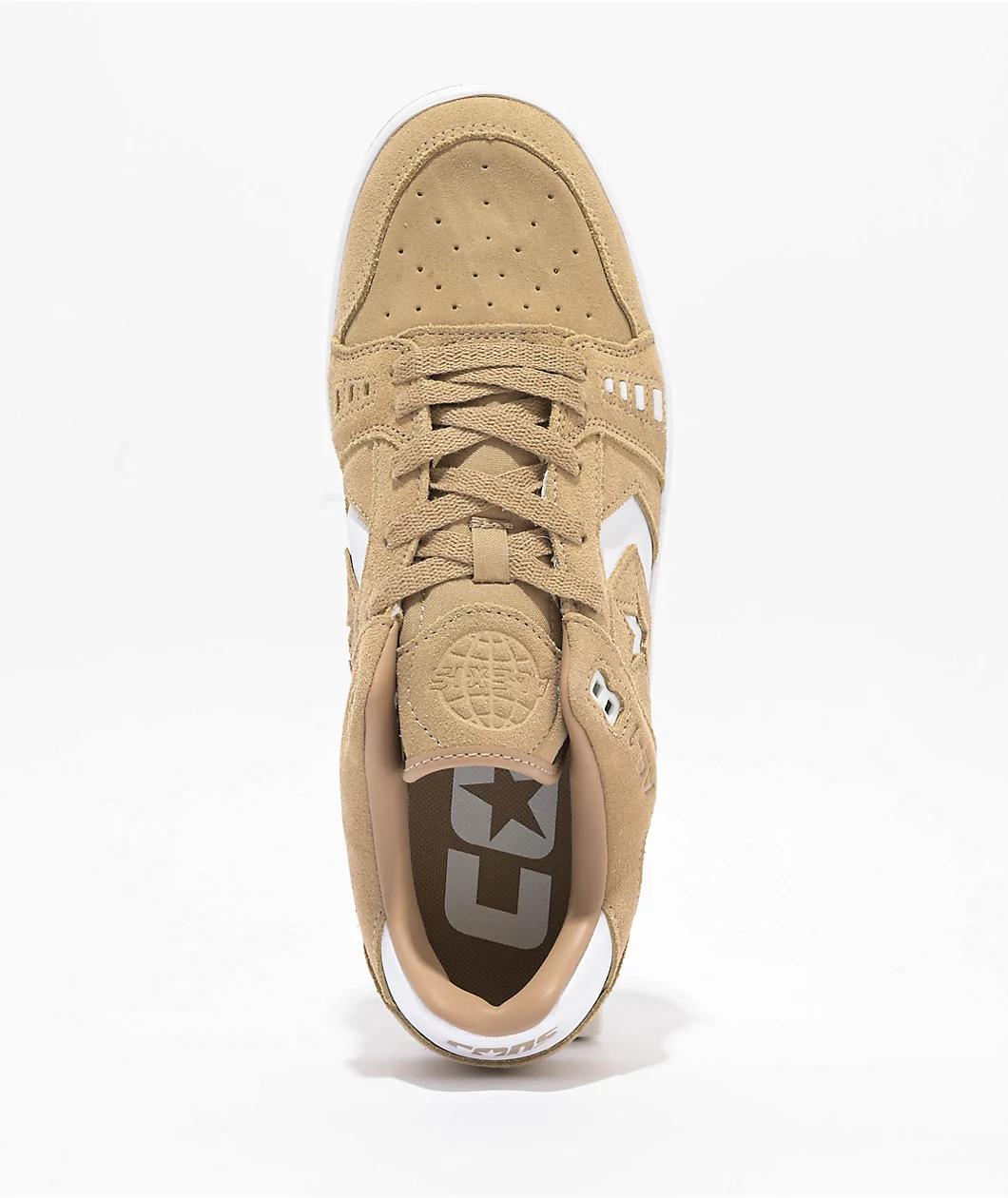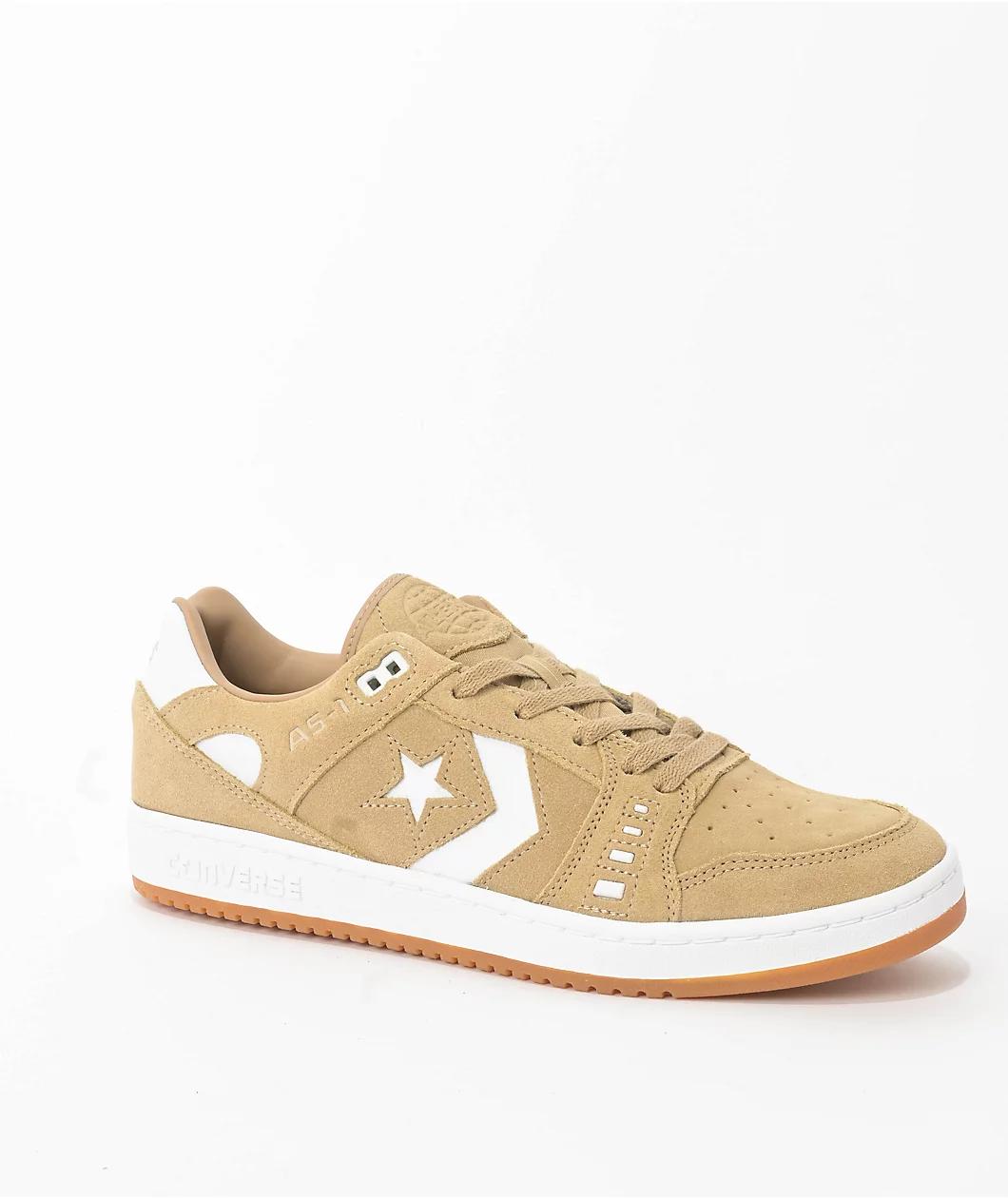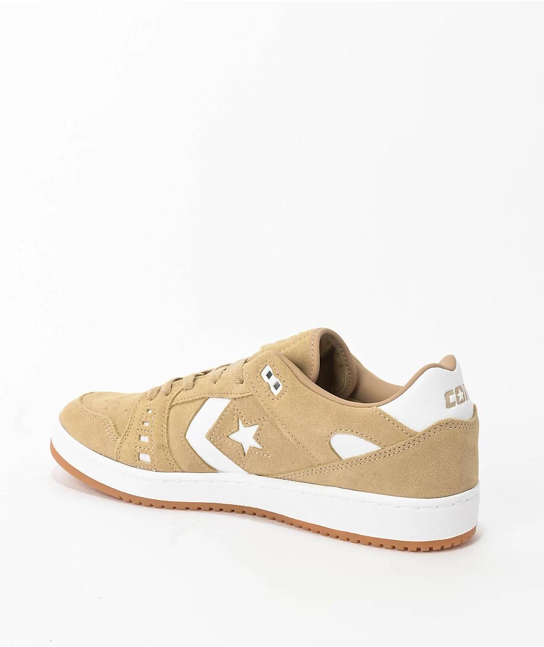 Converse proudly presents the AS-1 Pro skate shoes in a "Nomad" khaki and white colorway. These Alexis Sablone pro model shoes have Cons branding on the sidewalls, heel collar, and tongue for a sleek vibe. Designed to withstand skateboarding, the AS-