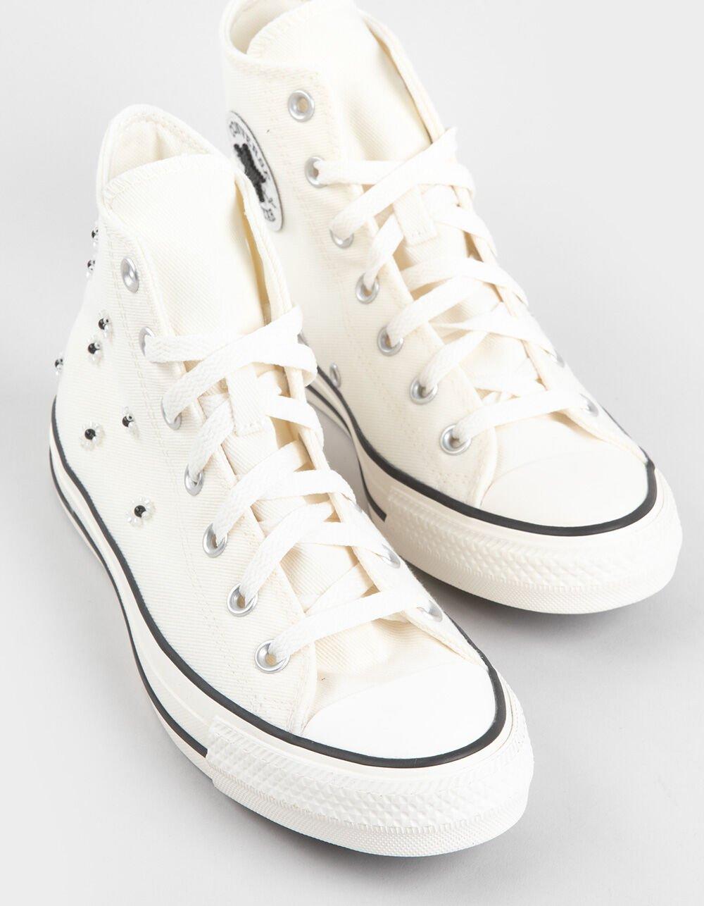 Converse Chuck Taylor All Star Beads High Top Shoes. Crafty. Cute. Classic. You and beaded Chucks have a lot in common. Durable canvas twill upper for subtle texture and sheen. OrthoLite cushioning helps provide optimal underfoot comfort. Beaded flower embellishments add a crafted touch. Debossed faux leather Chuck Taylor ankle patch. Imported.