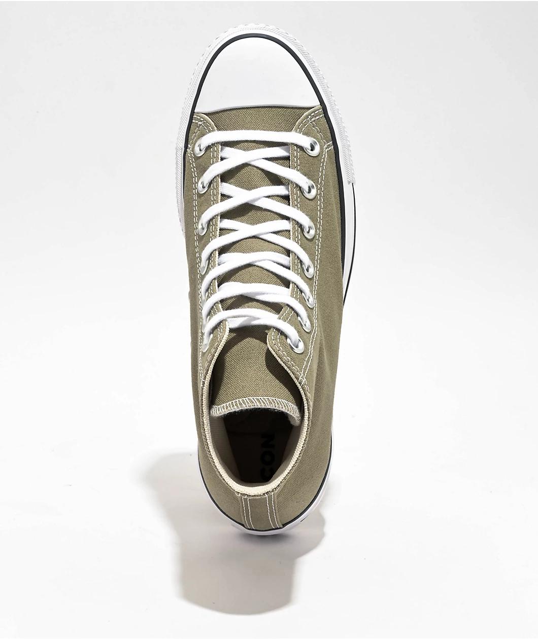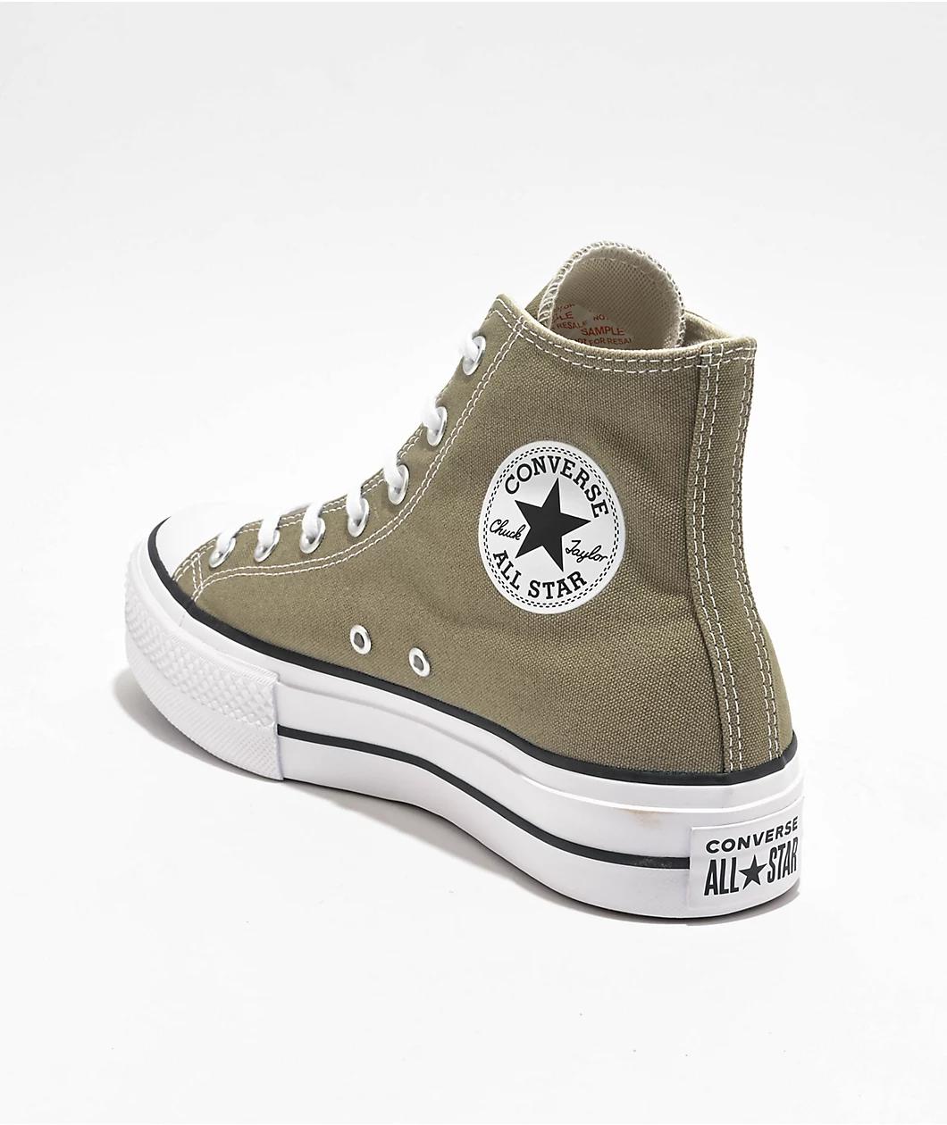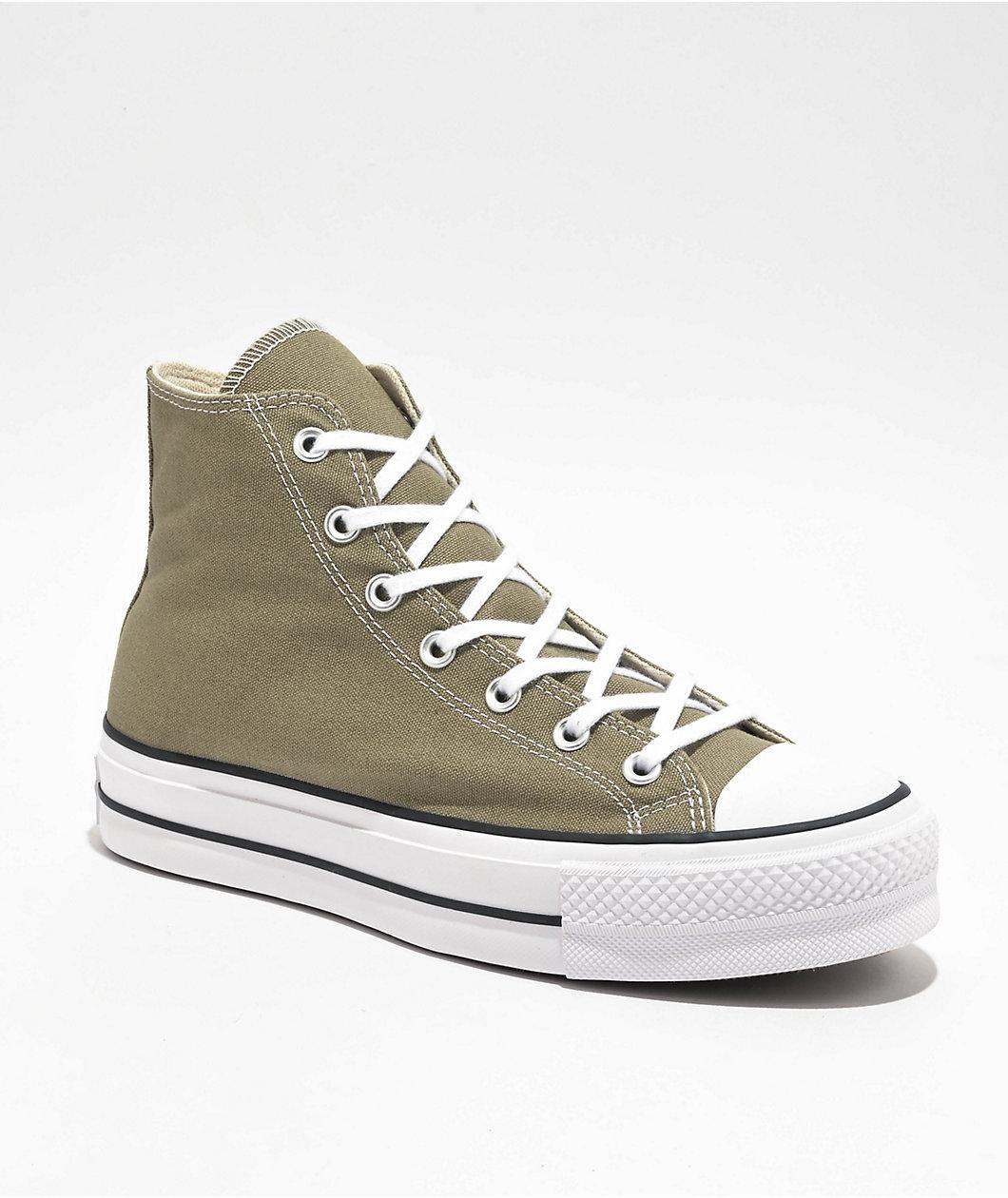 Featured in an olive green colorway, Converse presents the Chuck Taylor All Star Lift Platform Mossy Sloth shoes. These platform sneakers are made with a durable canvas upper and a rubber-reinforced toe bumper for toe protection. With a 1.5" platform