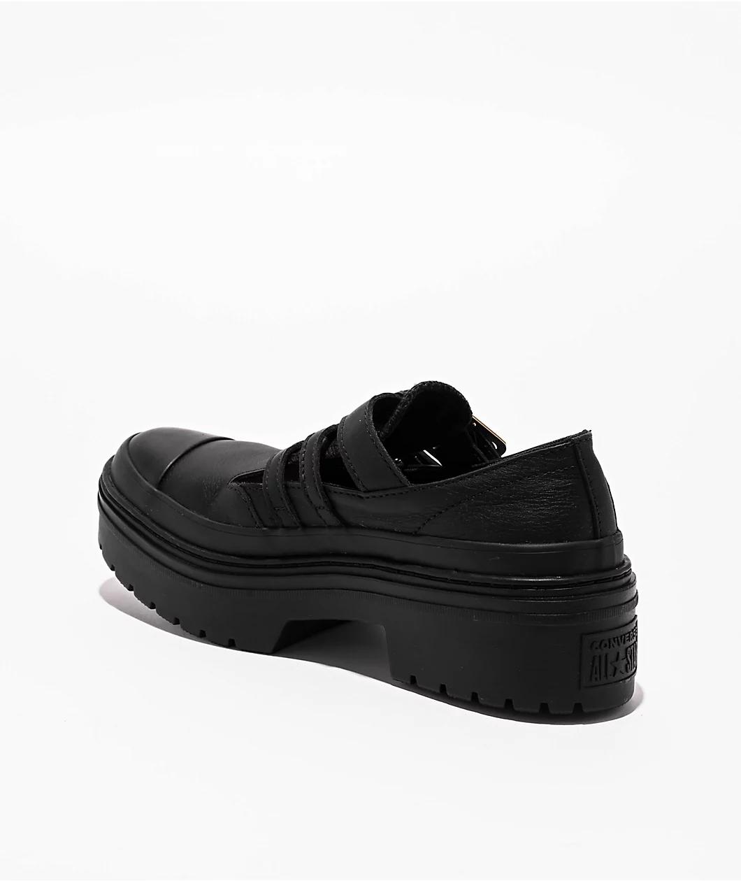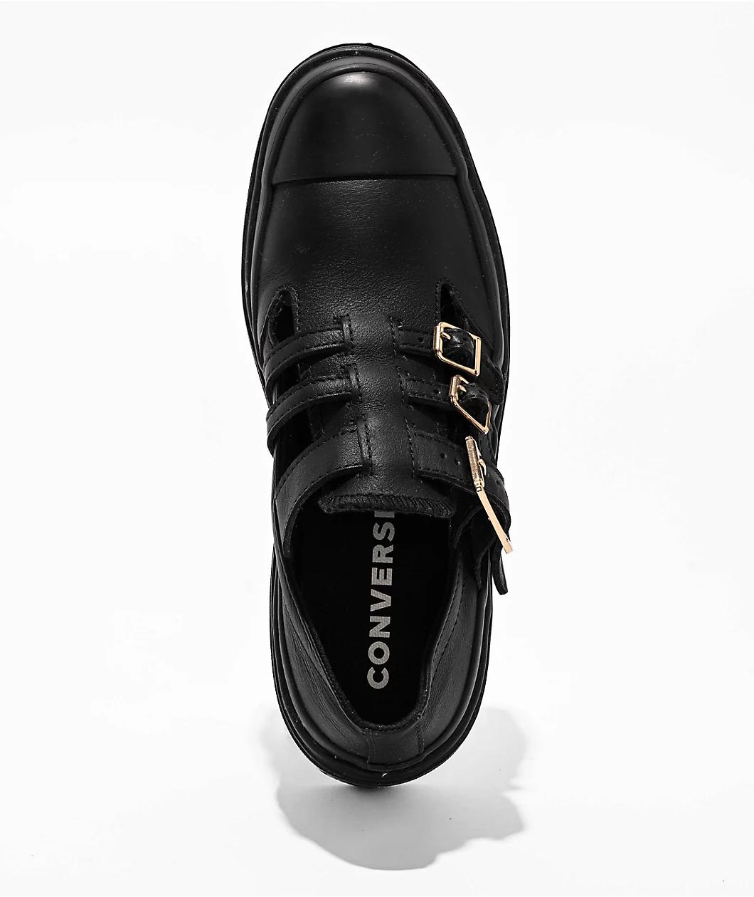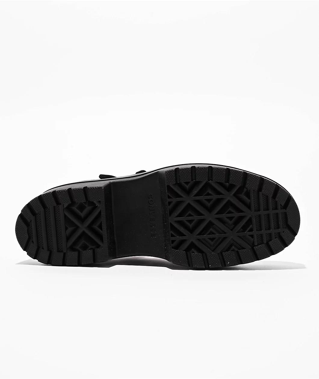 Converse presents the Chuck Taylor All Star Lugged Heel Mary Jane shoes in a black colorway with three gold buckles, creating a look perfect for those wanting an edgy twist on a classic Mary Jane. A 2" platform heel adds stylish height, while the ful