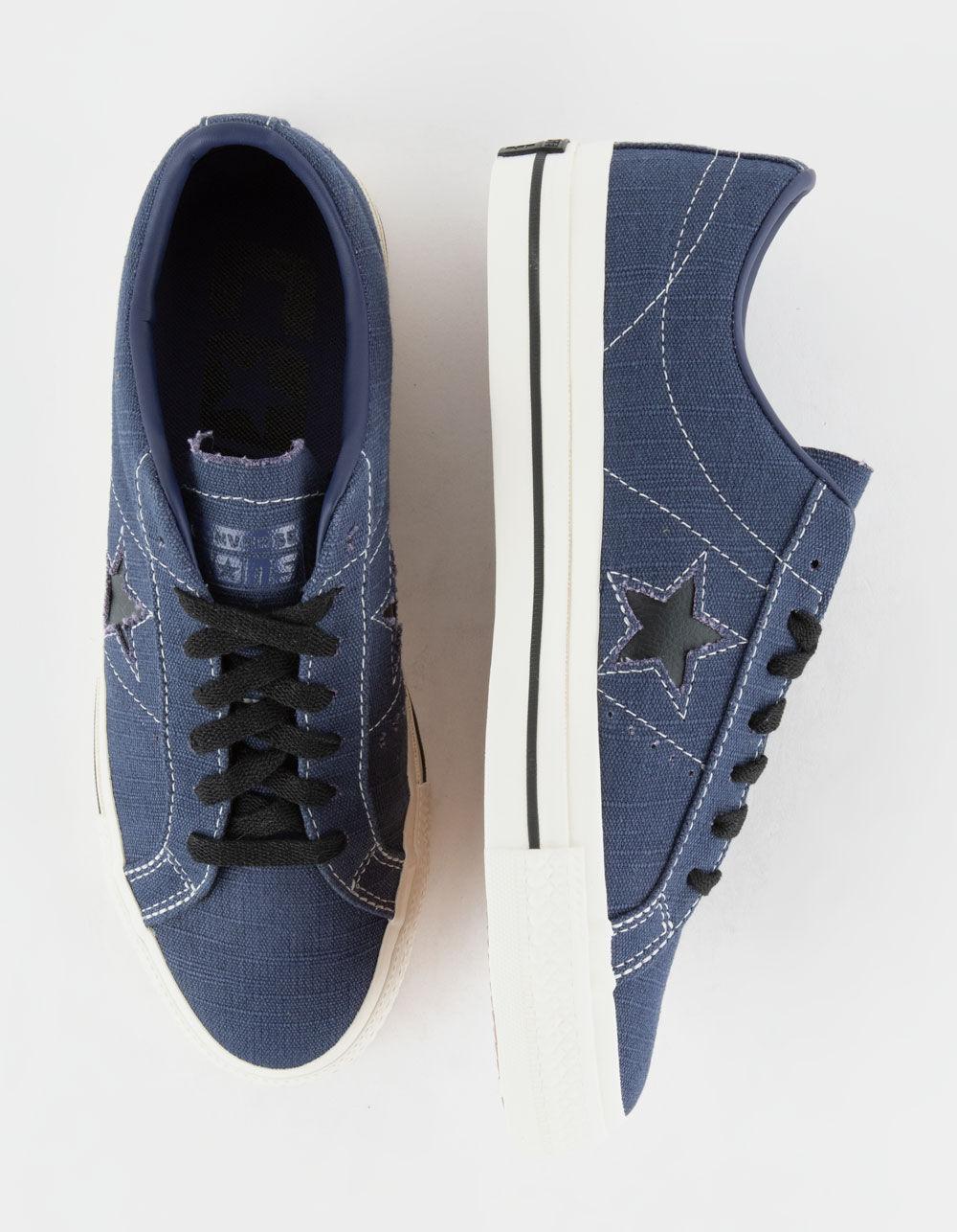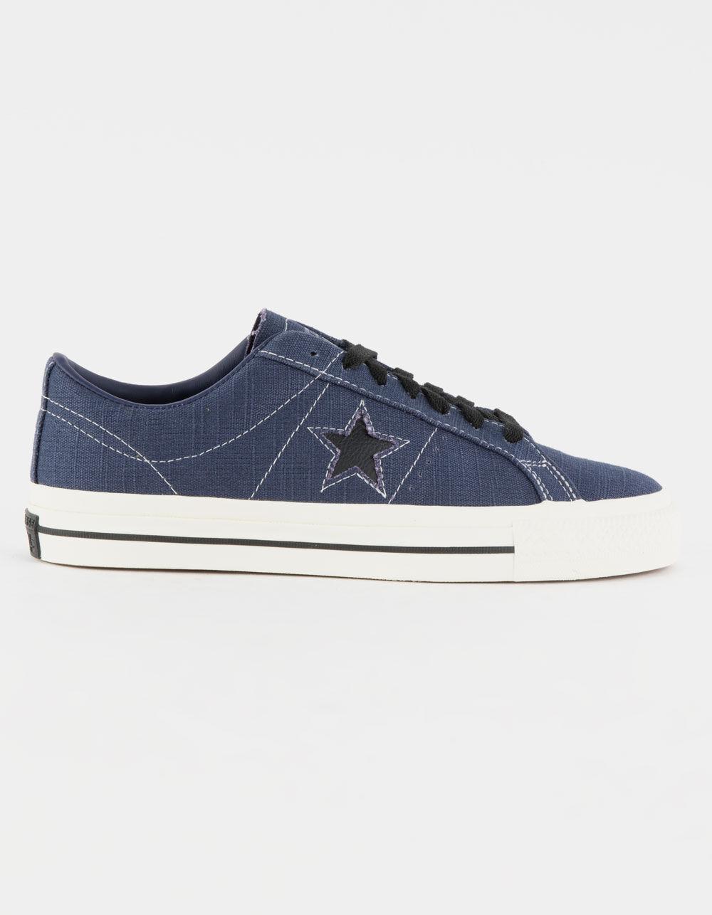 Converse One Star Pro Low Top Shoes. In 1974, Converse launched a low-cut, version of the Chuck Taylor All Star, featuring a single star logo on one side—the One Star sneaker. Reissued in the early '90s, the design gained traction with the skateboarding community thanks to a performance remodel. Today's One Star Pro provides better boardfeel and impact protection thanks to a CONS traction rubber outsole and molded CX sockliner. The low profile adds total flexibility, while a rubber-backed, canvas upper keeps it durable. Poly cotton laces for durability. Iconic One Star branding. Imported.