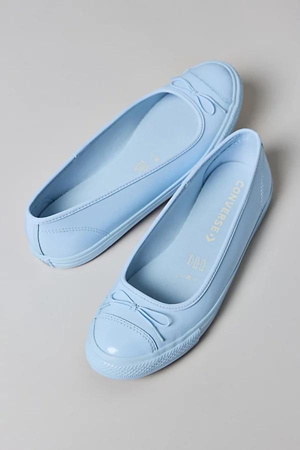 Sneakers meet ballet flats with these Converse Chuck Taylor All Star Dainty Ballerina ballet flats in high-gloss patent leather. Ultra-low profile, these slip-on ballet flats feature a sweet bow at the rounded toe. Features Converse Chuck Taylor All Star Dainty Ballerina patent leather ballet flats Shiny patent leather Converse shoes Ultra-low profile ballet flats Rounded toe with a bow accent Comfortable OrthoLite cushioning Classic Converse rubber sole Slip-on flats style Content + Care Patent