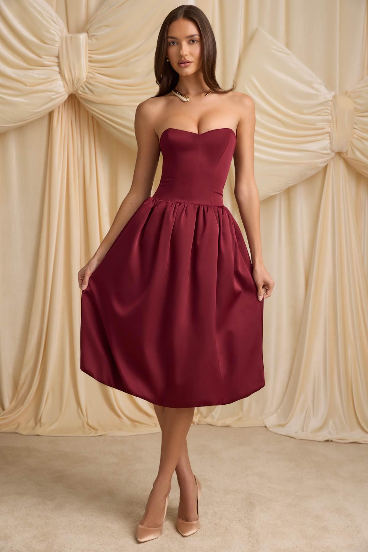 Looking for the ultimate party season dress? Meet Gloriana. This versatile design instantly converts from a chic midaxi length to a stunning mini, thanks to discreet internal poppers at the waist, meaning you can switch up your look in seconds. It’s crafted from premium, non-stretch bonded satin with a built-in corset bodice for enhanced shaping and a voluminous bubble hem. It’s complete with a V-shaped open back, anchored with pretty bow embellishments.Sweetheart neckStraplessBuilt-in corset for enhanced shapingConvertible style with internal popper fastenings at waistV-shaped cut-out back with bow embellishmentConcealed side zip fasteningBodycon fit with bubble hem skirt Midaxi length, SNP to hem approx. 116cm and mini length SNP to hem approx. 82cm based on a UK size 8Product code: 11870