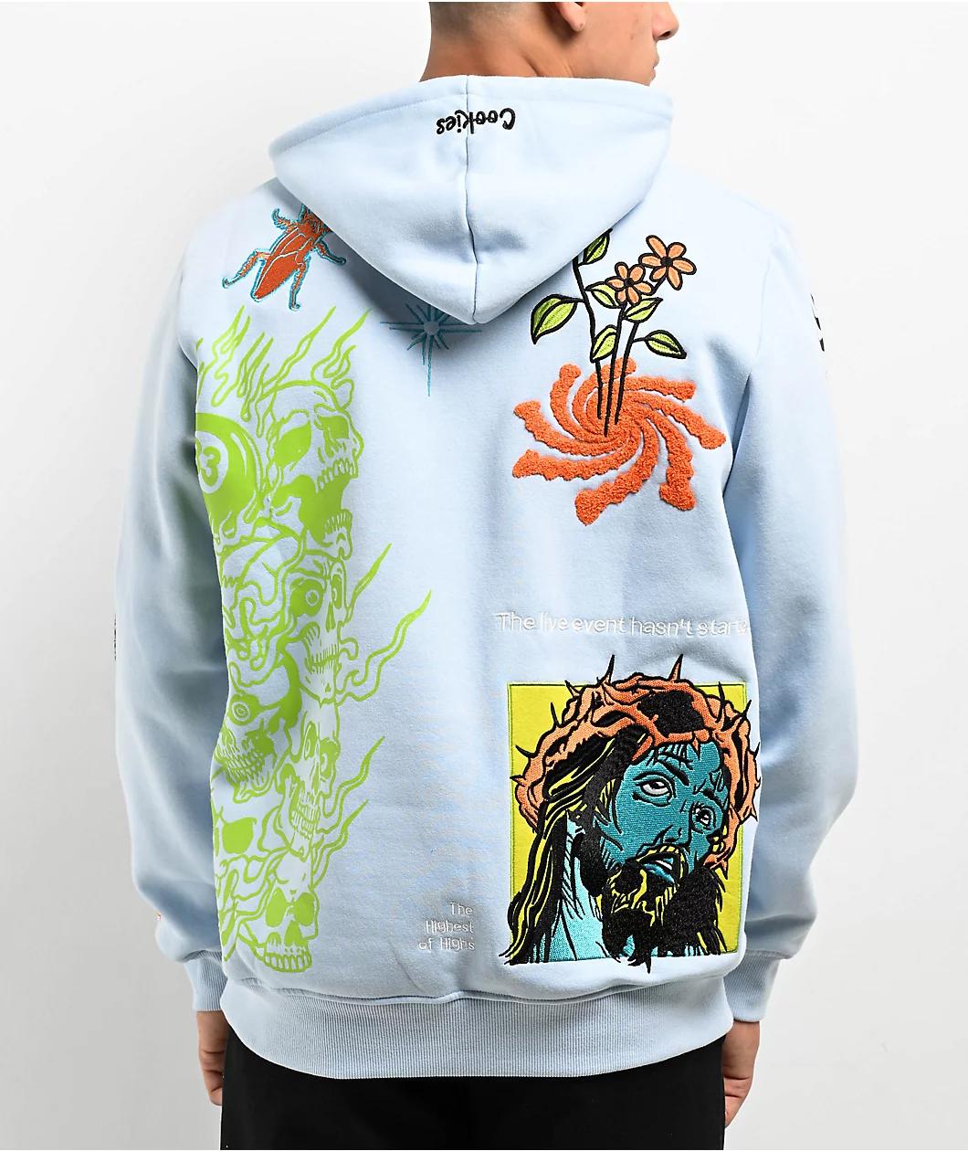 Coming in a light blue colorway, the Cookies Highest Of Highs hoodie features an eclectic collection of graphics including a butterfly, C logo and Cookies logo script. Offering a relaxed fit and soft brushed interior, the Highest Of Highs hoodie is d