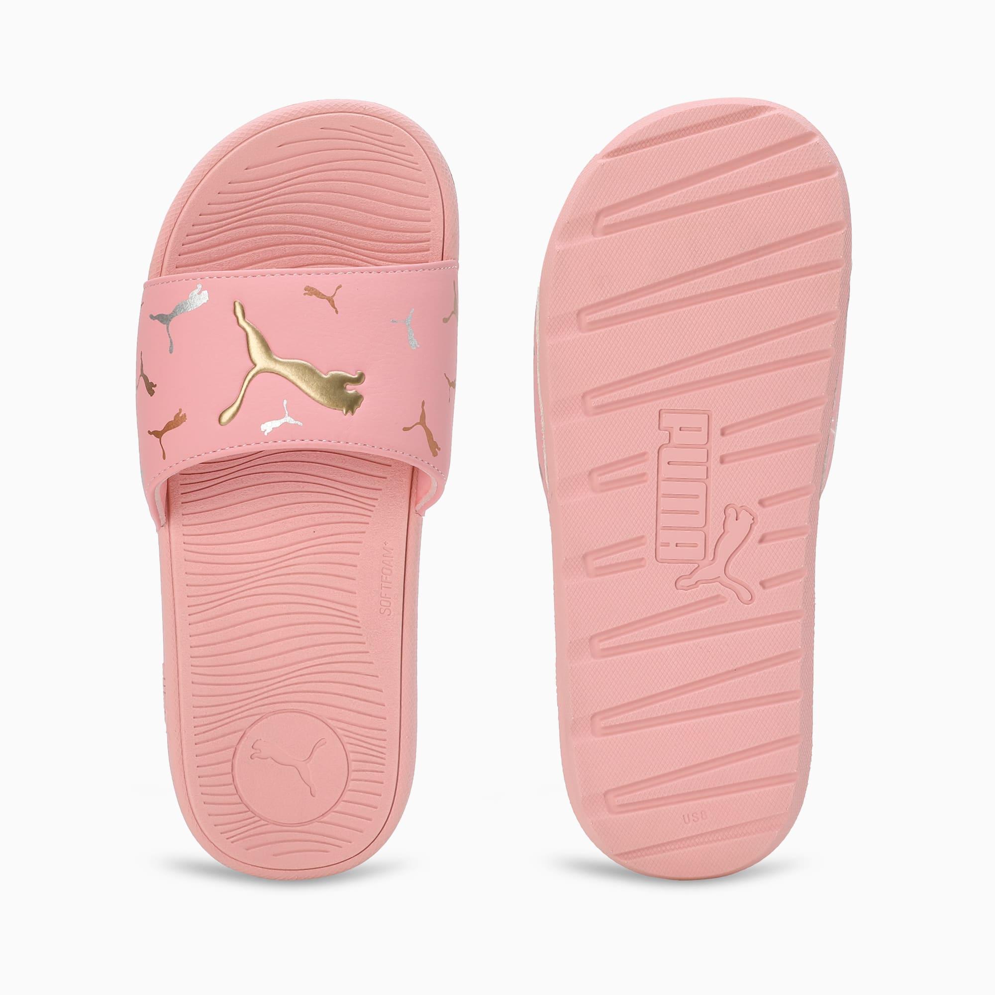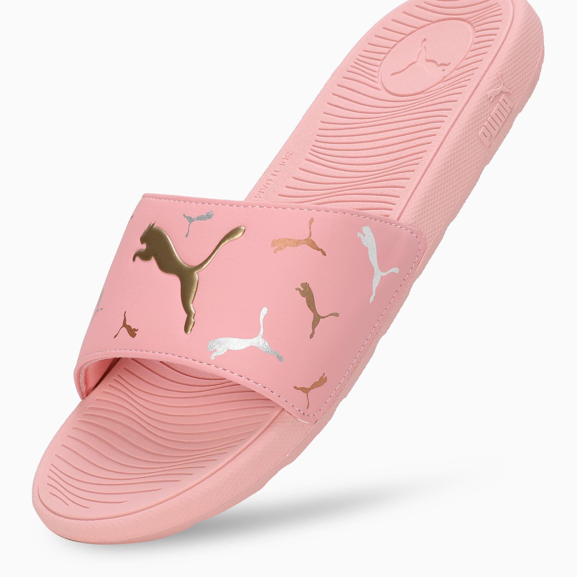 descriptionThe Cool Cat gets even cooler. In this 2.0 rendition we’ve refreshed the model’s footbed design and added in an even more responsive outsole and strap, all designed specifically to fit the female foot. This version features fun PUMA branding for extra cool.Style: 393338_01Color: Bridal Rose-Metallic Gold-PUMA SilverdetailsLight molded EVA outsoleSoft molded footbedSythetic leather upperSlip onPUMA branding detailsmaterials & careMaterial informationSockliner: 100% SyntheticOutsole: 100% SyntheticUpper: 100% SyntheticLining: 100% Textile