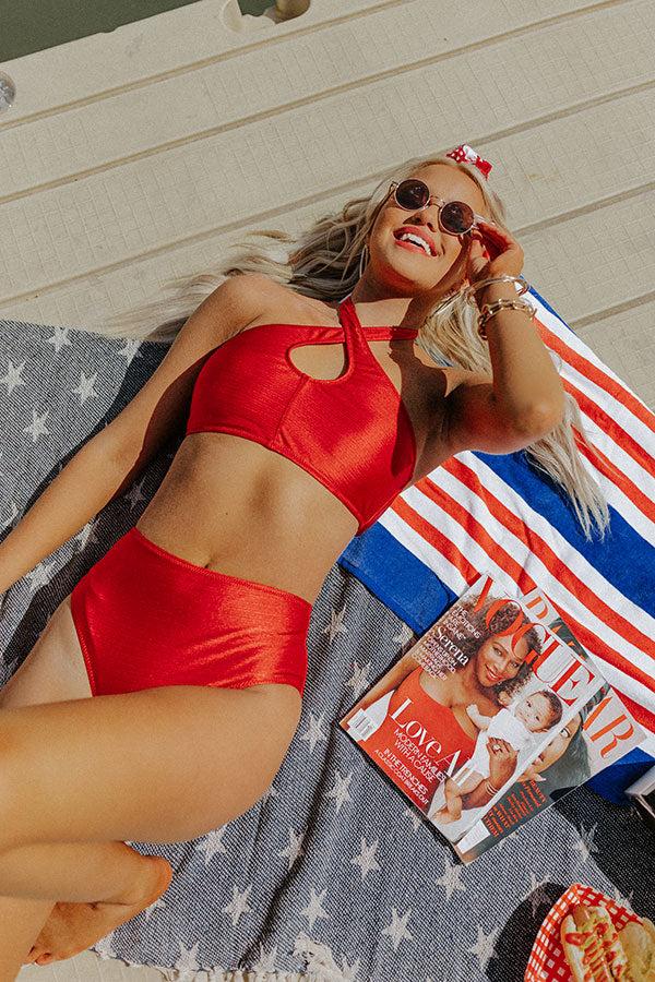 Keep cool all summer long in this red hot bikini bottom featuring lightweight four-way stretch material, a high waistline, and a flattering silhouette that ends in a cheeky fit! on products Measurements S : Hip 28-36", Waist 24-27". M : Hip 30-38", Waist 26-29". L : Hip 31-40", Waist 28-31".
