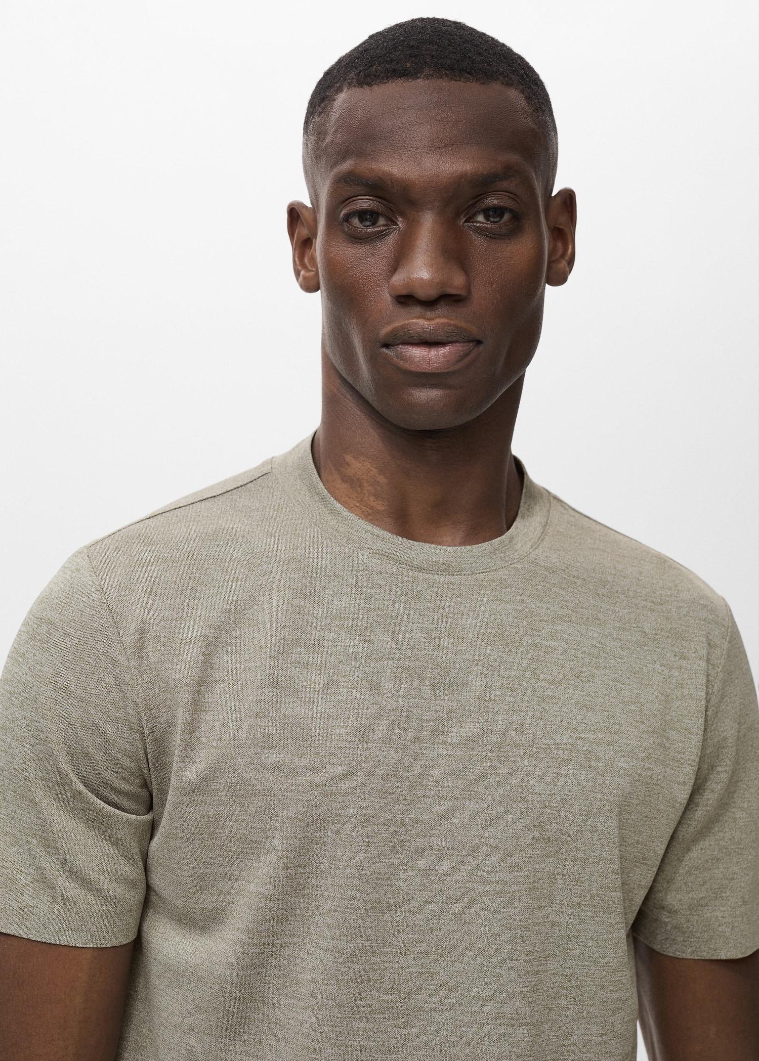 Performance Collection. Perfect for those looking for a functional and comfortable garment. Thermoregulator: This fabric offers optimal breathability to keep you at a stable temperature. Slim fit. Round neck. Short sleeves. Coolmax® is a special fabric that helps wick moisture away from the skin, keeping the body dry and warm in cold climates, and is lightweight and fresh in warm climates. Model is 190 cm and wears size M. Back length 28.94 in