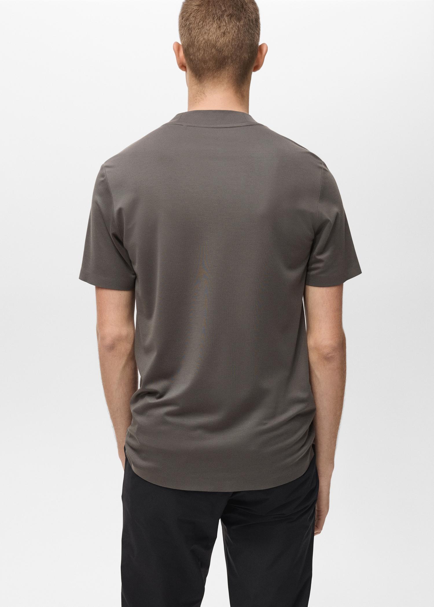 Performance Collection. Thermoregulating: This fabric offers optimal breathability to keep you at a stable temperature. Comfort Stretch: Stretch fabric for added comfort. Non-crease. Slim fit. Rounded neck. Double rear opening at the hem. The model is 6'3" and is wearing a size M. Back length 28.94 in. The Performance collection includes garments made with technical fibers. This selection offers a wide range of advanced features such as bi-stretch, quick-drying, easy ironing, thermoregulating, breathable or water-repellent fabrics, organized into three general categories: Thermoregulating, Functional and Comfort