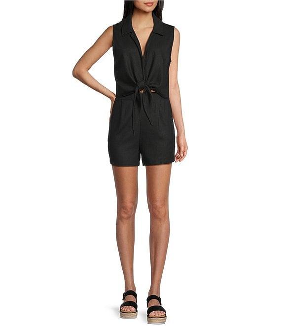 From Copper Key, this tank features: Linen fabrication Collared V-neckline Sleeveless Hook front closure Tie front detailing Linen blend Machine wash cold, tumble dry low Imported.