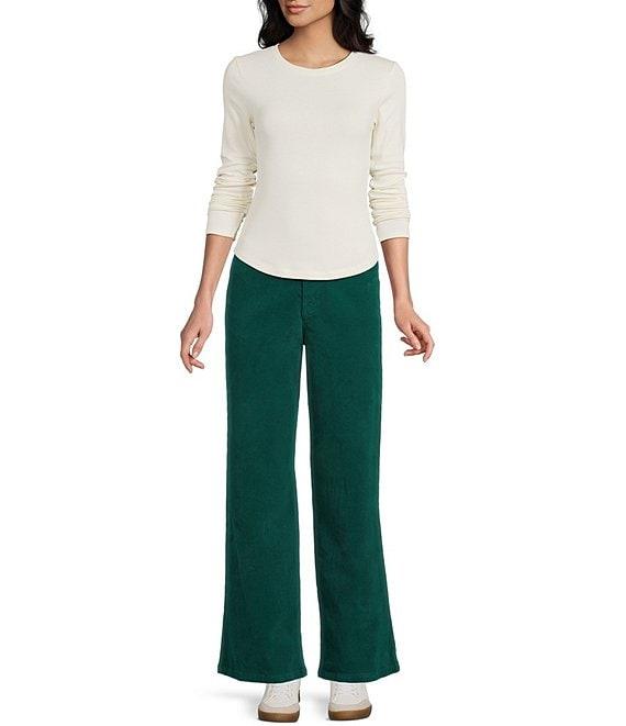 From Copper Key, these pants feature: Corduroy fabrication Full length Front button/zip closure 5 pockets Wide leg Straight hem 31" inseam Polyester/spandex Machine wash/dry flat Imported.