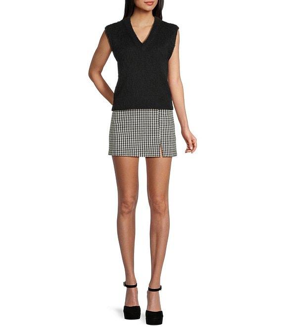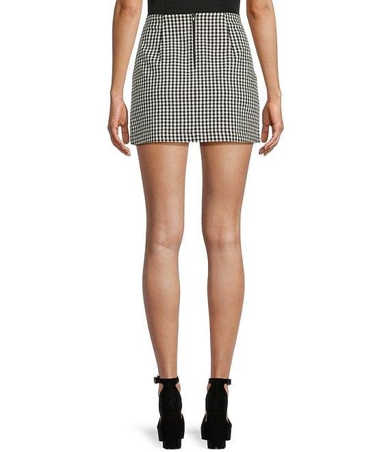 From Copper Key, this skirt features: Tweed fabric Gingham print Mini length Front left slit Back zipper closure Fitted silhouette Pull-on styling Polyester Machine wash/tumble dry Imported.