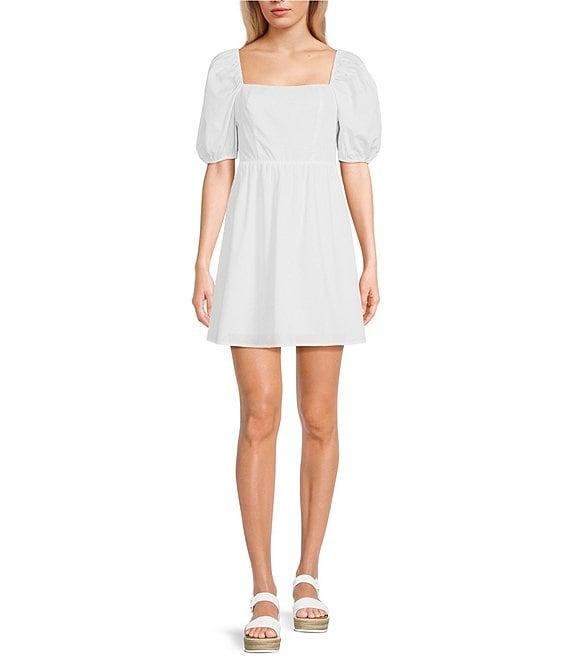 Copper Key Square Neck Puff Sleeve Dress