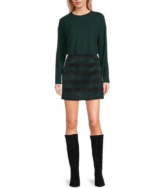 Copper Key Velvet Plaid Fleece Mini Skirt
