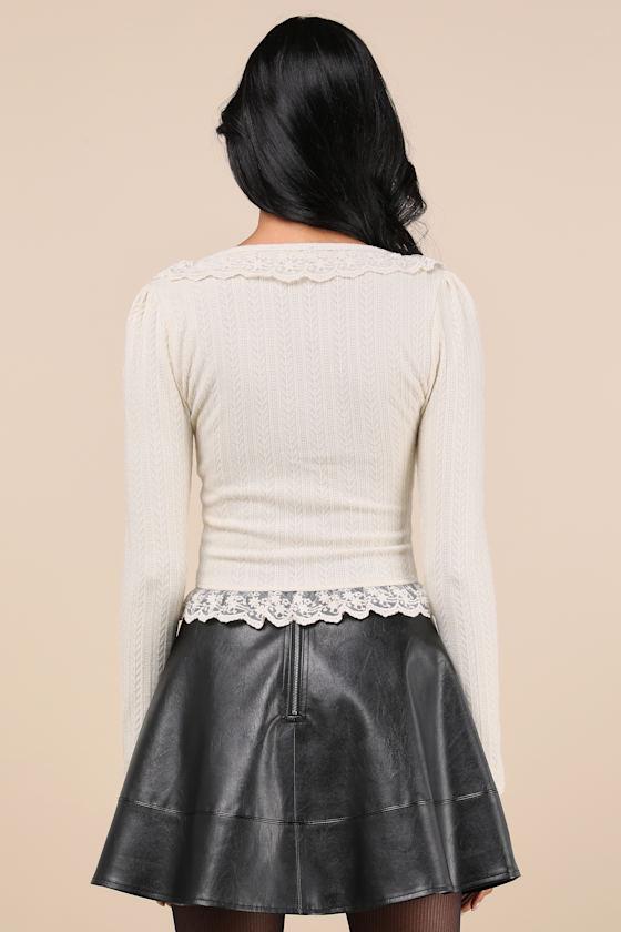 Your OOTD will be undeniably adorable with the Lulus Coquette Appeal Cream Pointelle Lace Long Sleeve Top! Stretchy knit fabric, with a pierce pointelle pattern throughout, shapes long sleeves and a flattering scoop neckline. Fitted bodice continues down to a cropped hem. Adorable, embroidered lace-like trim lines the neckline and hem.