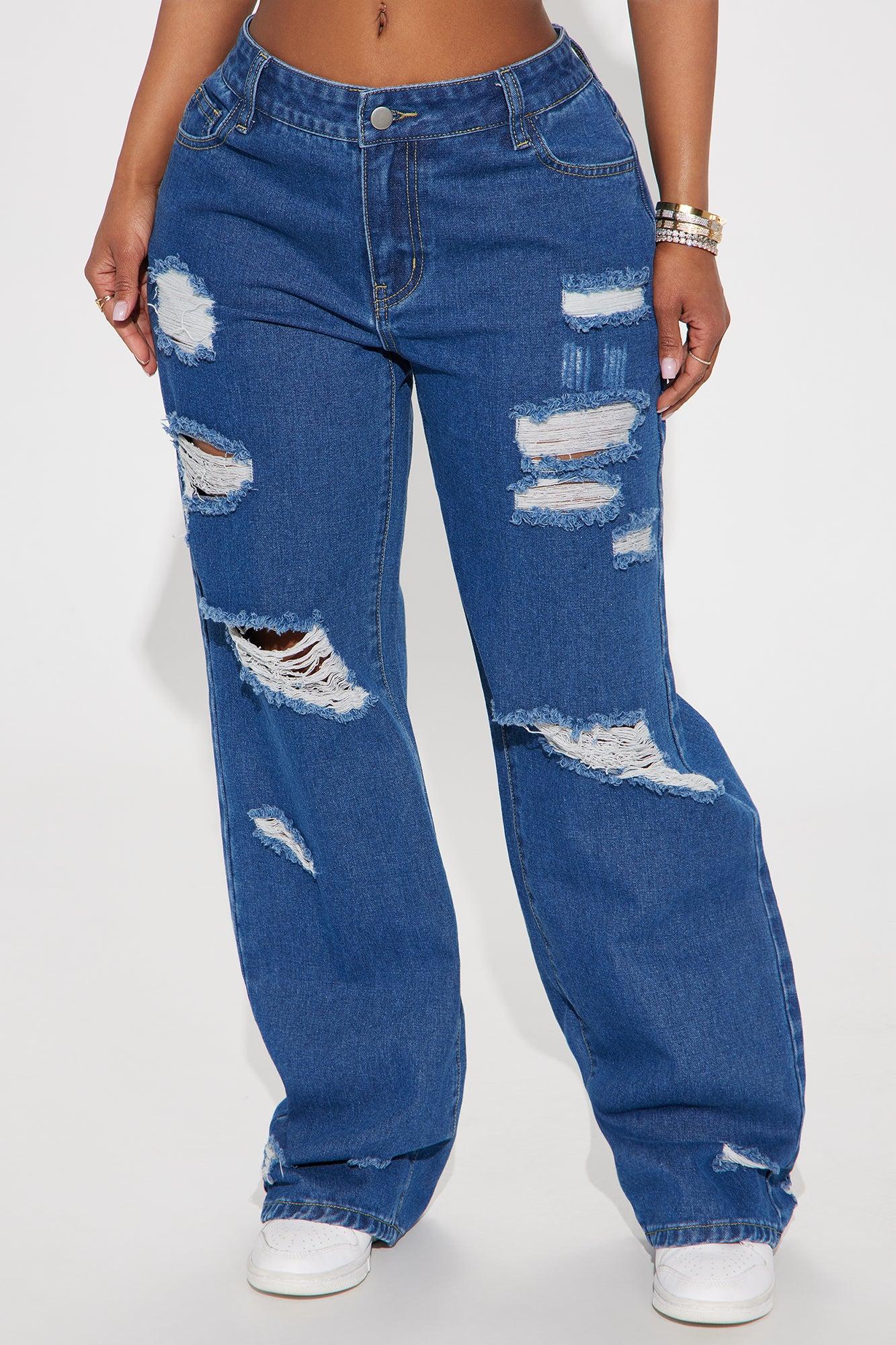 Available In Medium Wash. Straight Leg Jean 5 Pocket Destructed 10" Mid Rise 32" Inseam Non Stretch Disclaimer: Due To The Specialized Wash & Distressing Process, Each Garment Is Unique. 85% Cotton 15% Polyester Imported