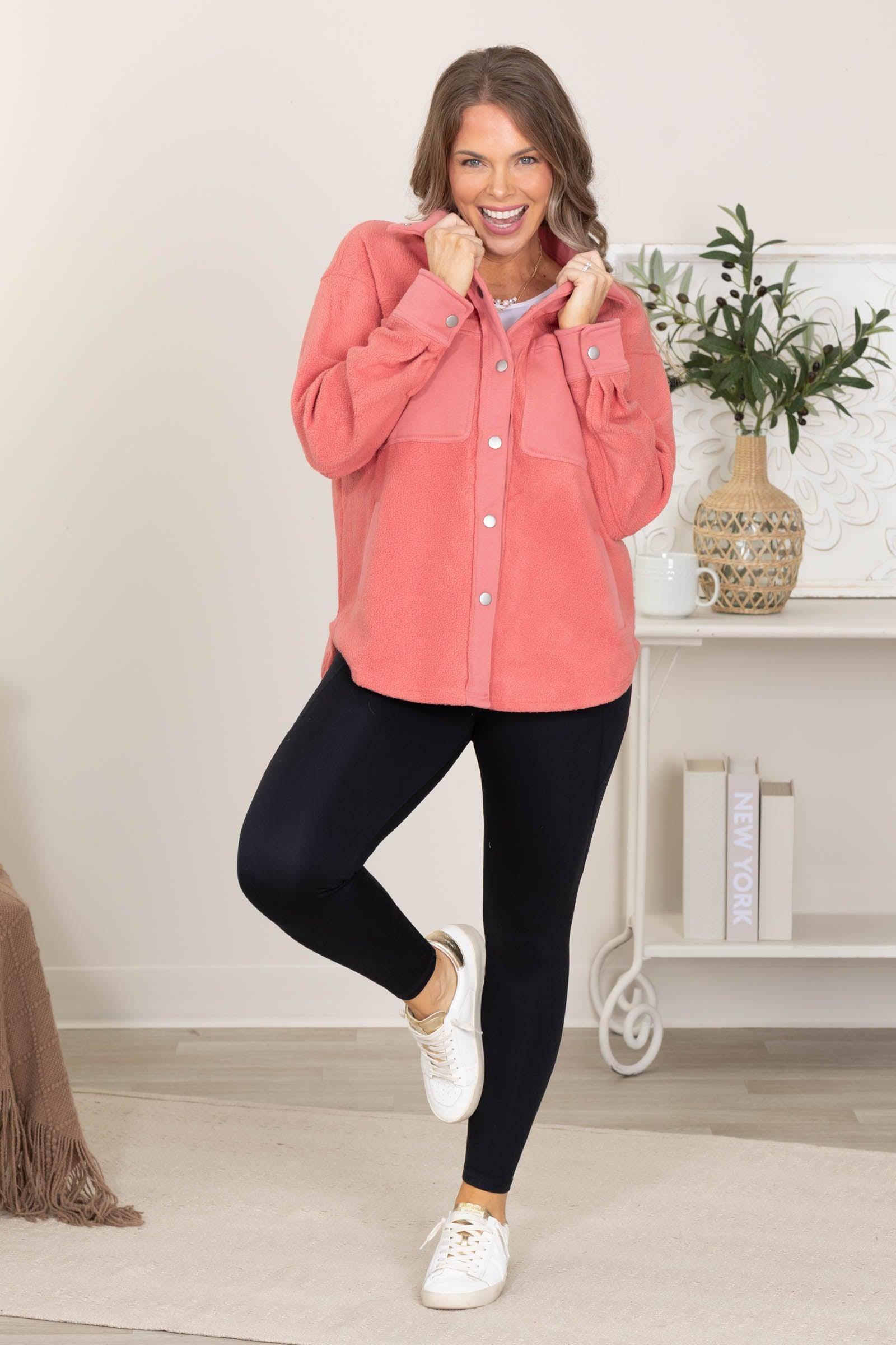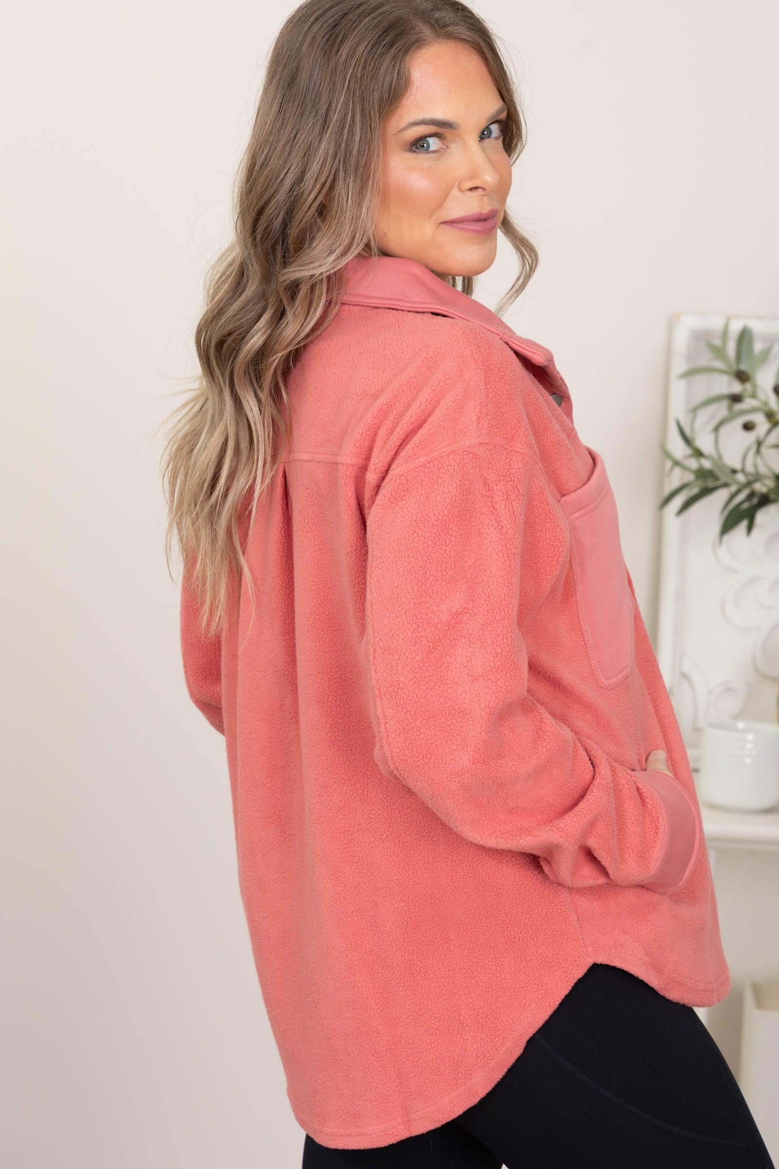 Product Details Colors: Coral Print: Solid Neckline: Button Down Sleeve: Long Sleeve Hemline: Round Brand: Oddi Material and Care Self: 73% Polyester 27% Cotton Hand Wash Cold Hang/Line Dry Size and Fit Small: Bust 46" Waist 46" Length 28.5" Medium: Bust 48" Waist 48" Length 29" Large: Bust 50" Waist 50" Length 29.5" 1X Large: Bust 54" Waist 54" Length 31" 2X Large: Bust 56" Waist 56" Length 31.5" 3X Large: Bust 58" Waist 58" Length 32.5" Erica is 5’7” and wearing her true size small