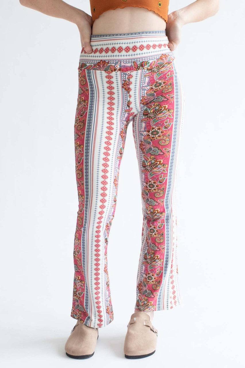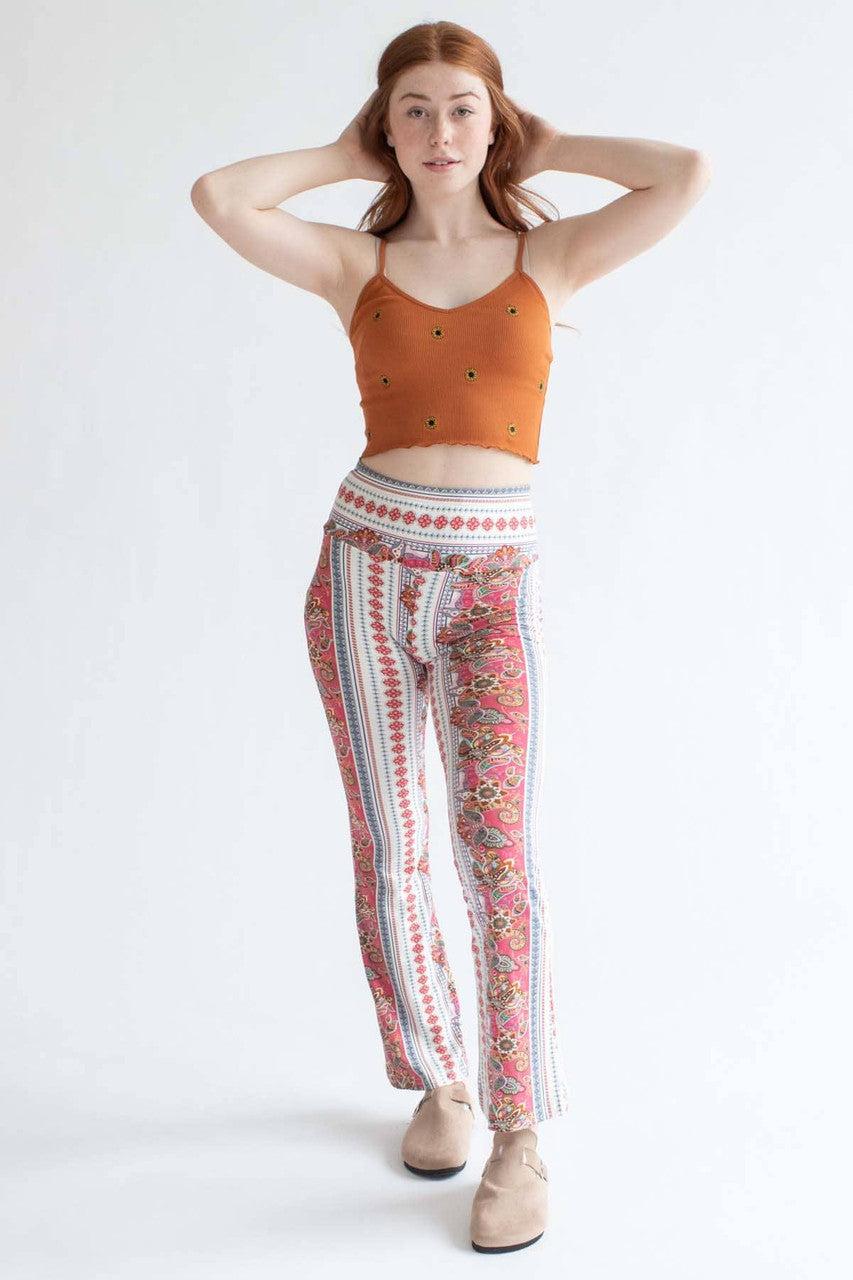 Coral Floral Border Print Bell Bottoms