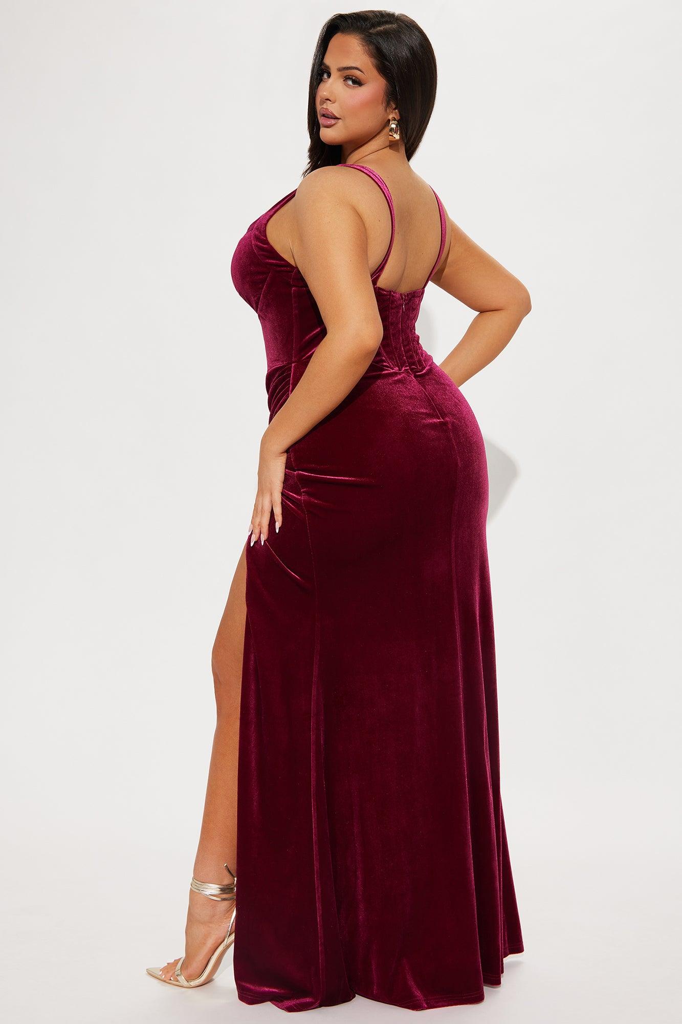 Available In Chartreuse And Wine. Velvet Gown Deep V-Neck W/ Mesh Sleeveless Bra Cups W/ Padding Corset Waist High Slit Back Zipper Lined Stretch Self: 95% Polyester 5% Spandex Lining 100% Polyester Imported California Proposition 65 WARNING: Cancer and Reproductive Harm - www.P65Warnings.ca.gov.