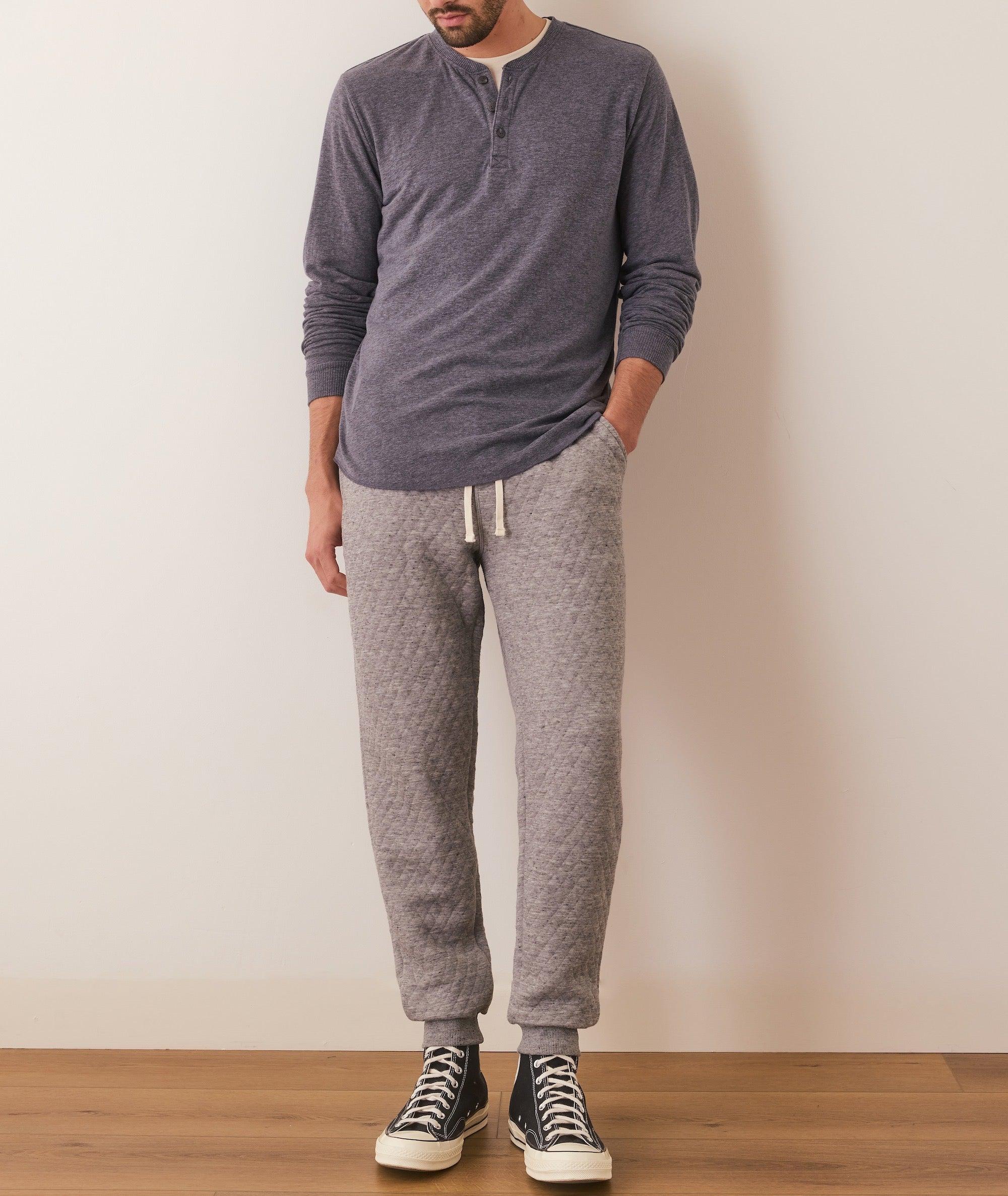 There is no sweeter abdominal delight than an absence of buttons and zippers, and we're taking it one notch further on the comfort level. Enter this Corbet jogger. Two layers of absurdly soft fabric, filled and quilted into perfection. Pair with our Reversible Corbet Pullover for peak duvet-like coziness.