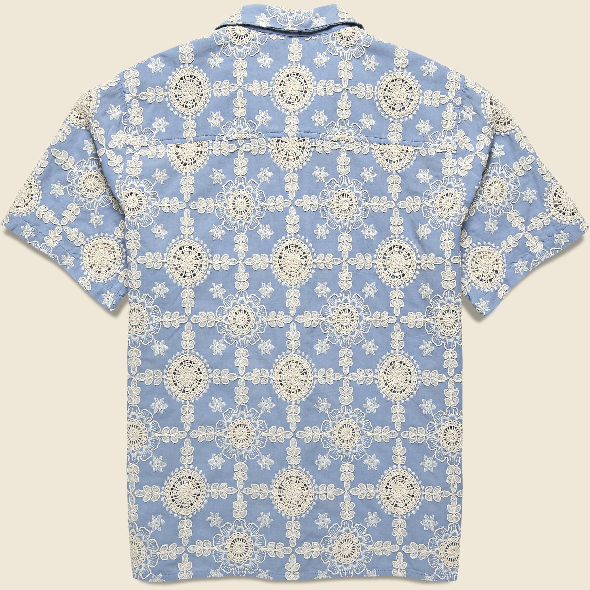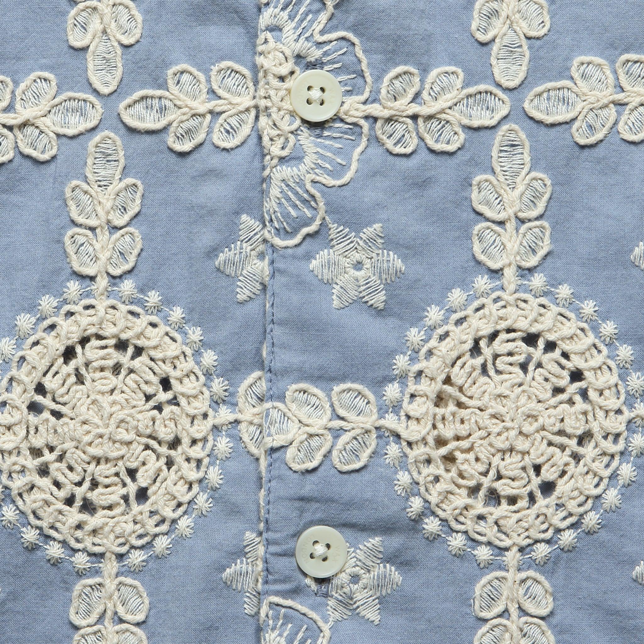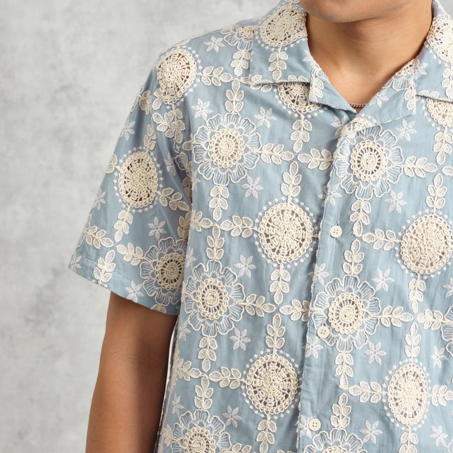 The Corded Lace Didcot Shirt from Wax London is made with lightweight, breezy cotton that features an incredible, intricately laced design that lets the air flow freely to keep you nice and comfortable on hot, sunny days. It’s tailored with an easygoing, relaxed fit that runs true to size and comes with a simple 5-button placket, a squared hem, and a classic camp collar for a laid-back look that stands out among the crowd. Lightweight cotton Intricate, floral-laced design Simple 5-button placket Open camp collar Squared hem Relaxed, boxy fit that runs true to size We recommend taking your normal size or taking one size down for a slimmer fit Materials: 100% cotton The following measurements are for size Medium: Chest: 46” | Shoulder: 18” | Sleeve: 19 ½” | Length: 27”