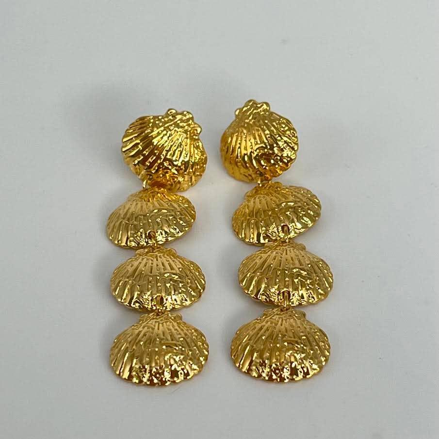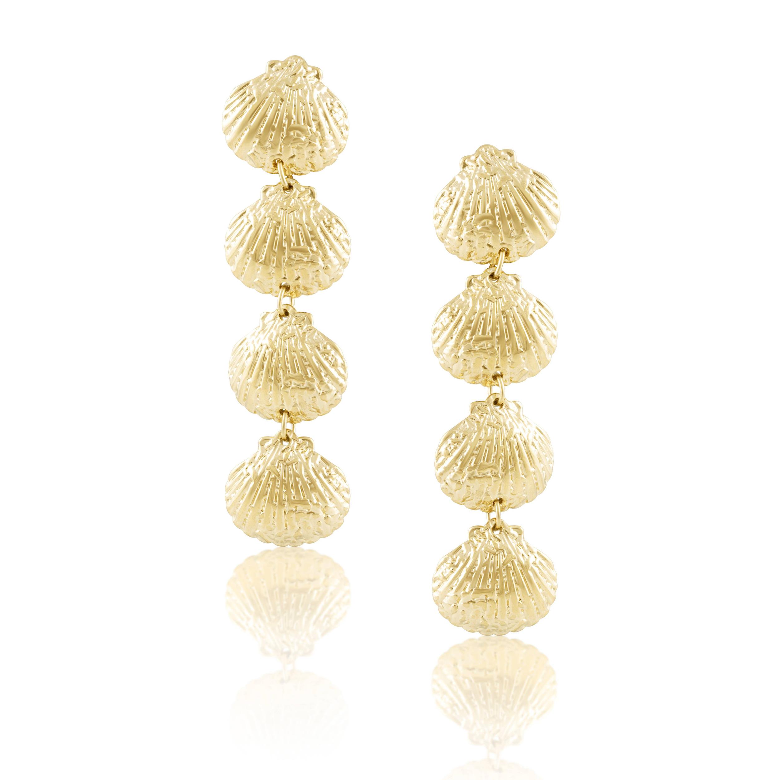 Make a statement with the elegant Cordelia drop earring. Crafted with a bold gold sea shell, these stunning earrings will add a touch of glamour to any ensemble. Perfect for special occasions, be sure to make a lasting impression!