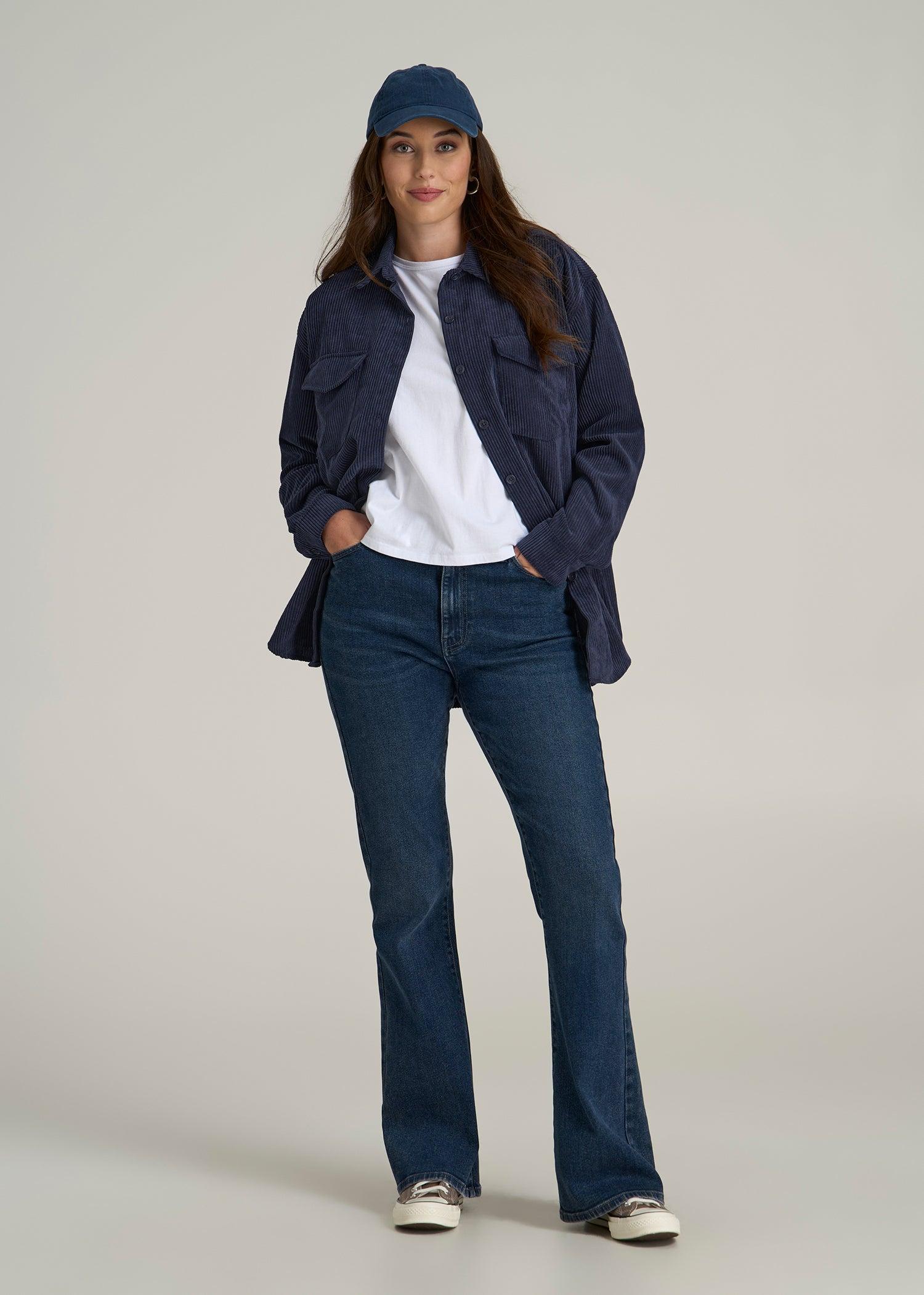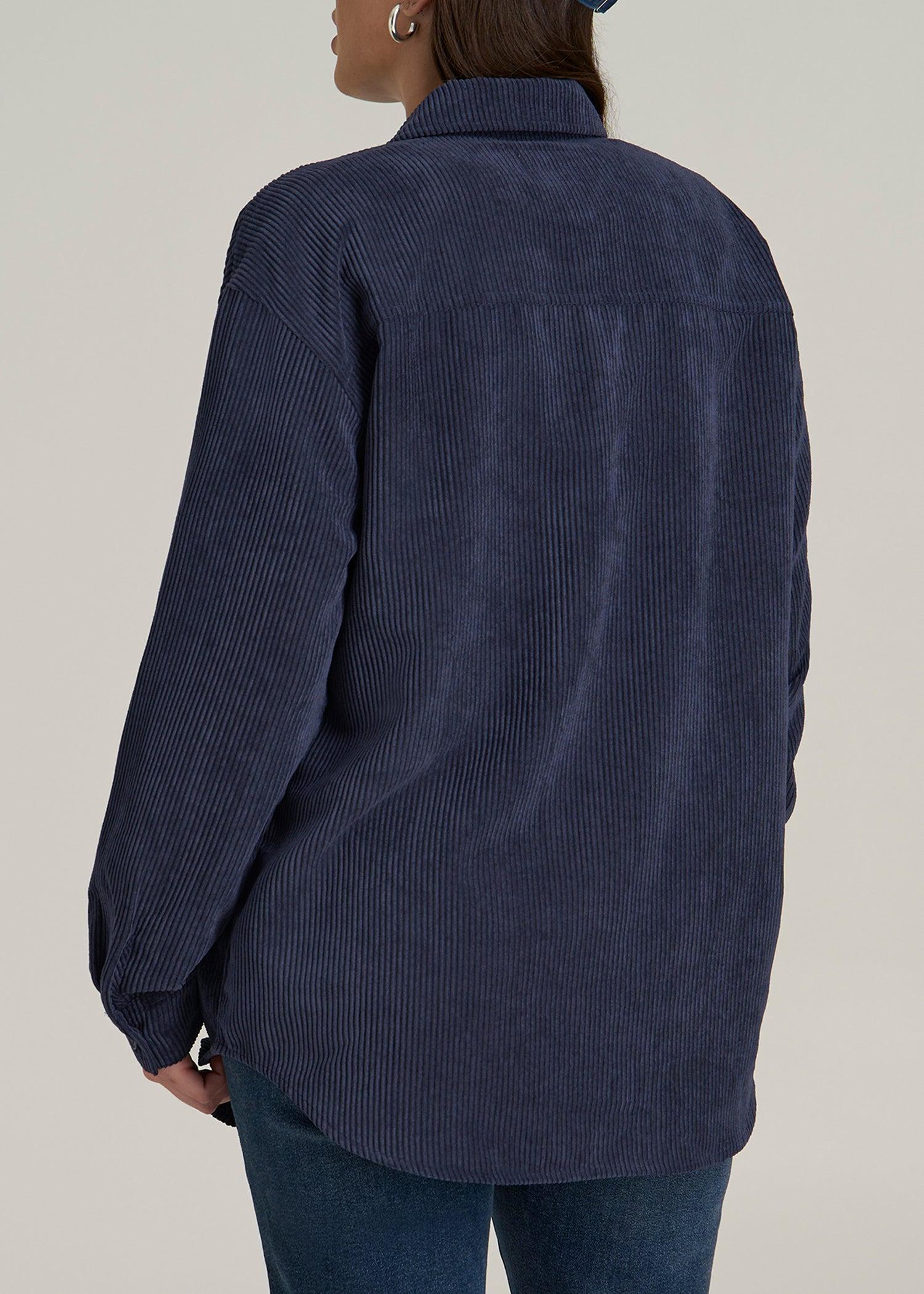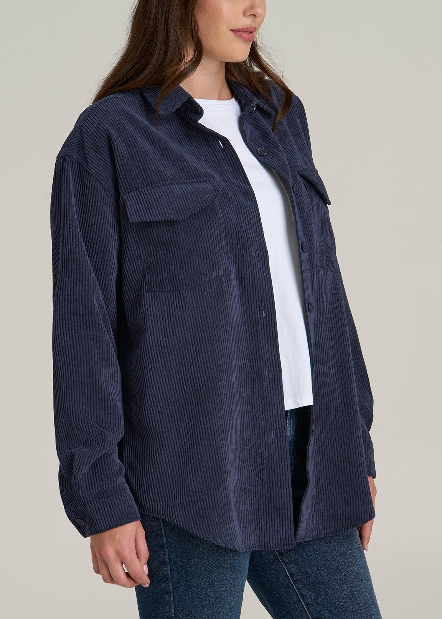 The Corduroy Button Shirt Tailored for Tall Style Elevate Your Casual Fit Introduce a touch of timeless style to your wardrobe with our Corduroy Women's Tall Button-up Shirt. This relaxed-fit women's tall shirt is made from high-quality corduroy, ensuring both comfort and durability. The point collar and double chest patch pockets add classic elements that enhance any casual ensemble. Ideal for a day out with friends or a casual day at the office, this tall women's blouse pairs wonderfully with your favorite jeans or skirts.• Point collar for a touch of sophistication• Double chest patch pockets for functionality and style• Longer than hip length for perfect fit and coverage SIZE & FIT: Designed for women 5'9" to 6'6" Relaxed fit for all-day comfort Perfect length for your longer torso Model is 5'11" wearing size M Tall Size M Tall: Body length: 32", Sleeve length: 34.75" FABRIC & CARE: 91% polyester, 9% nylon Machine wash cold with like colors Gentle cycle Only non-chlorine bleach when needed Tumble dry low Cool iron if needed Do not dry clean