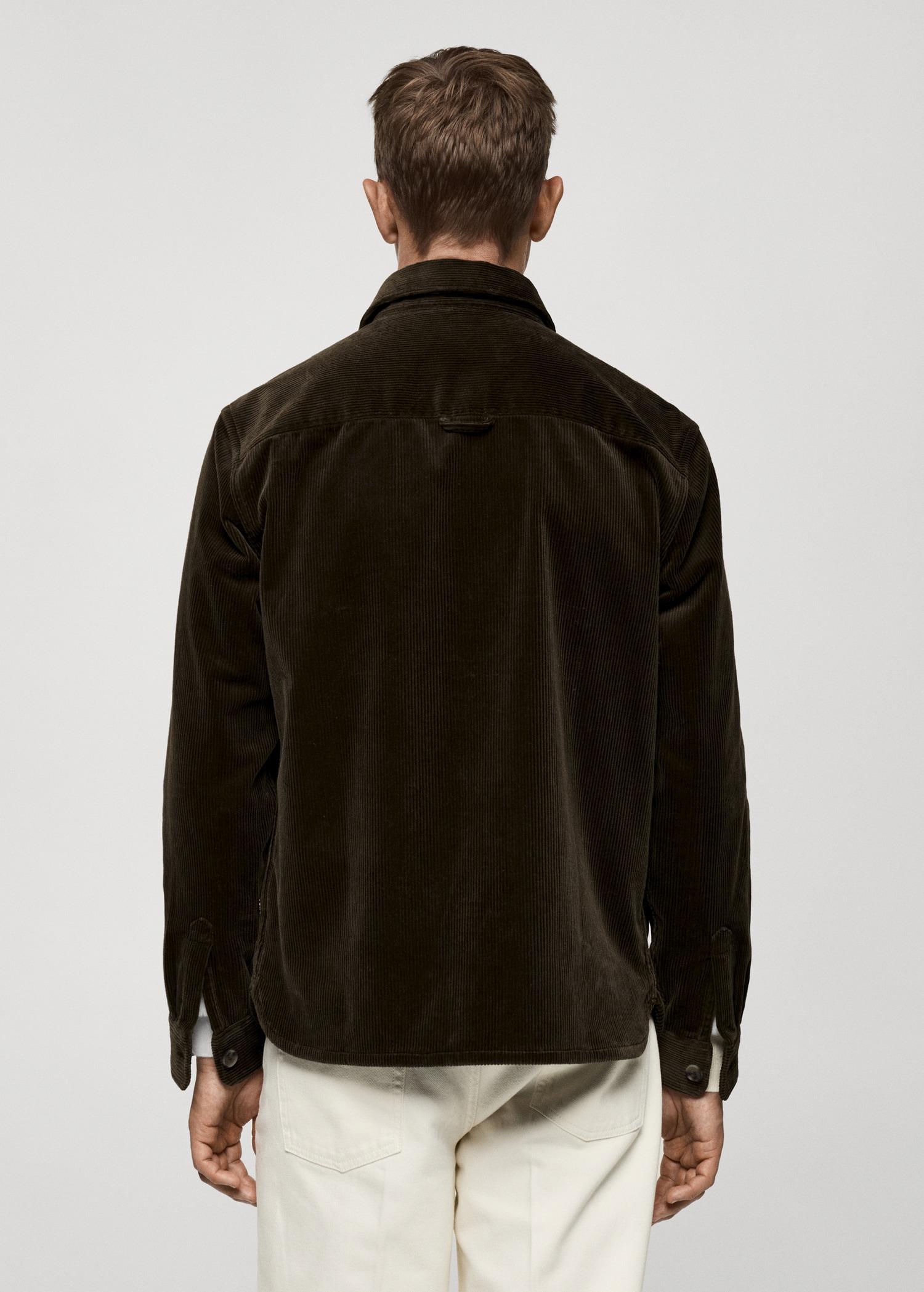 Regular fit. Cotton fabric. Corduroy fabric. Classic collar. Front button closure. Two patch pockets with flaps on the chest. Long sleeve with buttoned cuffs. Rounded hem. The model is 6'3" and is wearing a size M. Side length 15.51 in. Back length 30.12 in