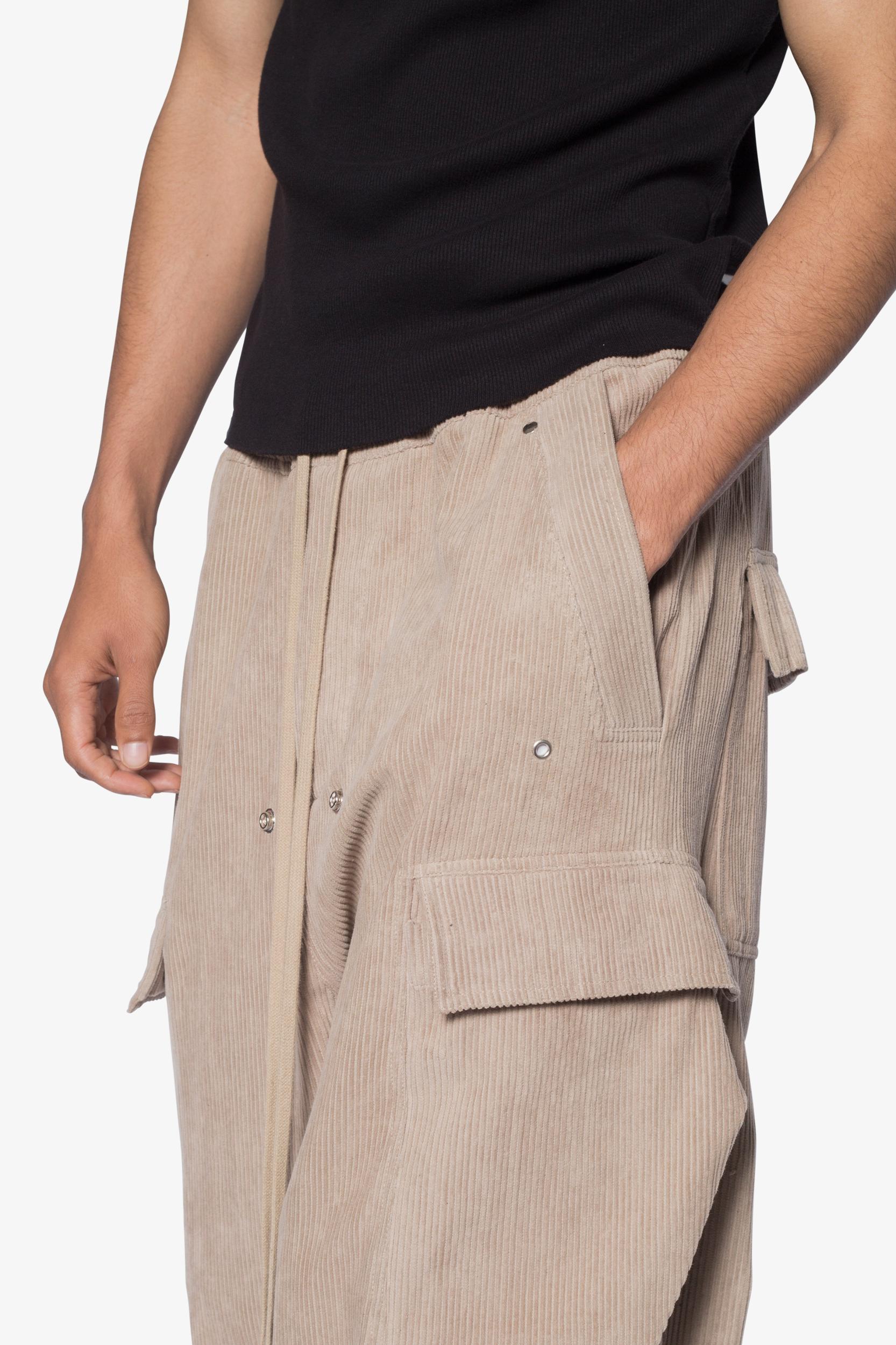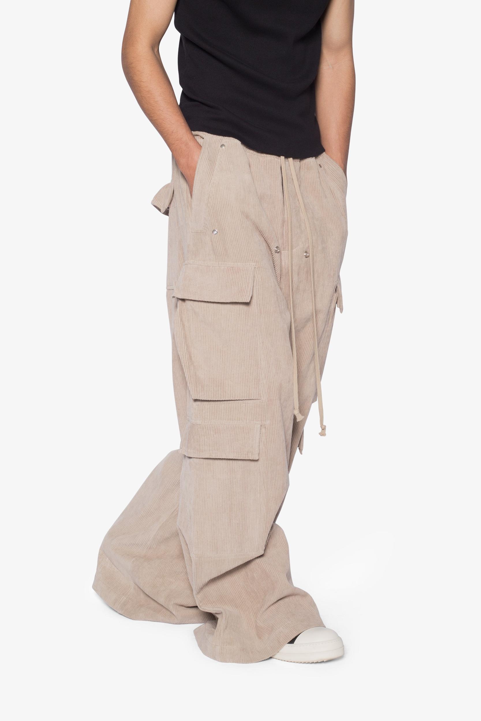 the Corduroy Rave Double Cargo Pants are designed with a new oversized rave fit, constructed from a cotton corduroy fabric, contrast drawcord, and finished with cargo pockets throughout. details ultra baggy fit throughout 100% cotton extended inseam model is 6’1, 140 lbs and wears a size 30