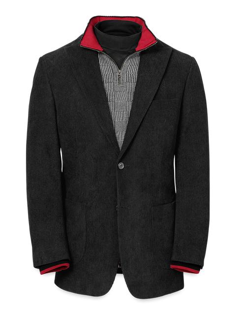 Corduroy Single Breasted Peak Lapel Suit Jacket - Black