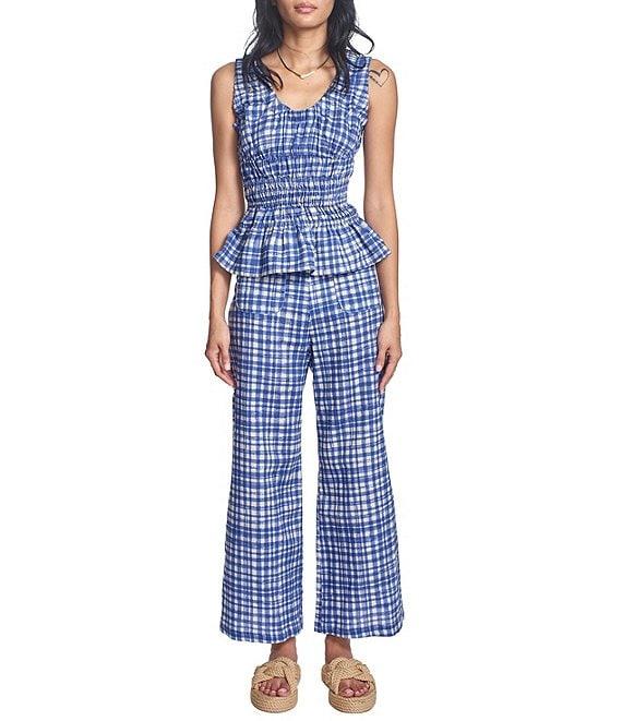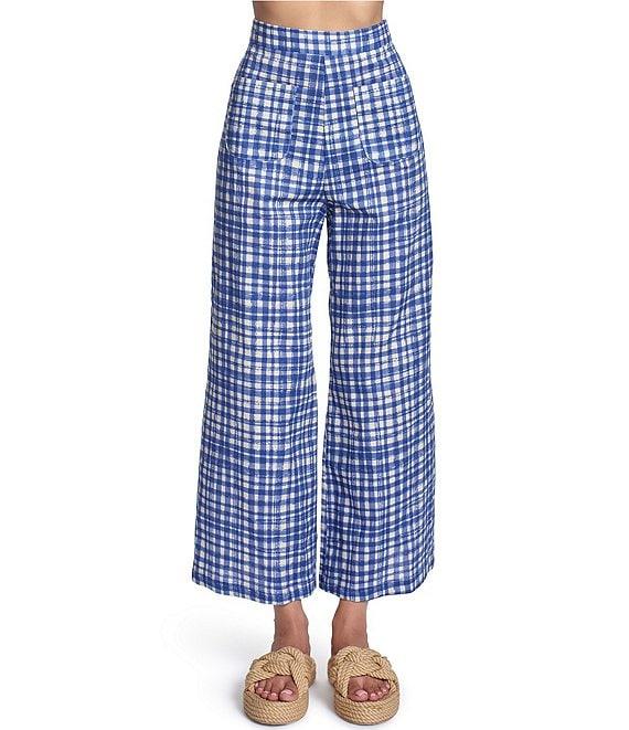 COREY LYNN CALTER Aria Stretch Woven Gingham Plaid Print Flat Front Wide Leg Coordinating Cropped Pants
