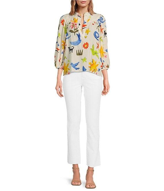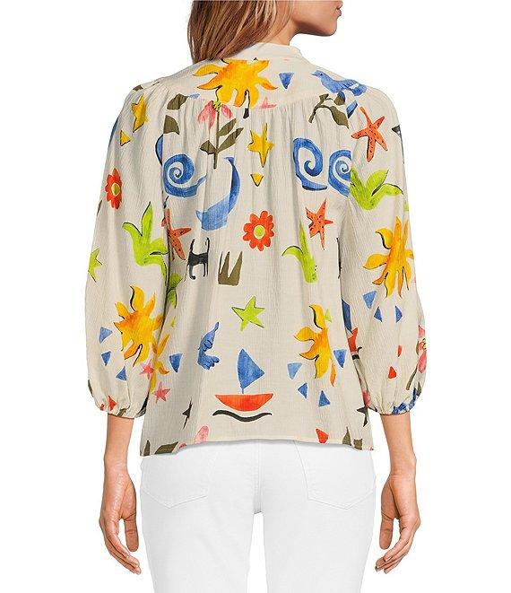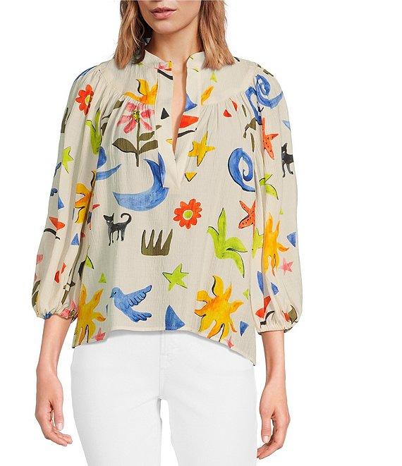 COREY LYNN CALTER Corinne Printed Gauze Split V-Neck 3/4 Sleeve Blouse