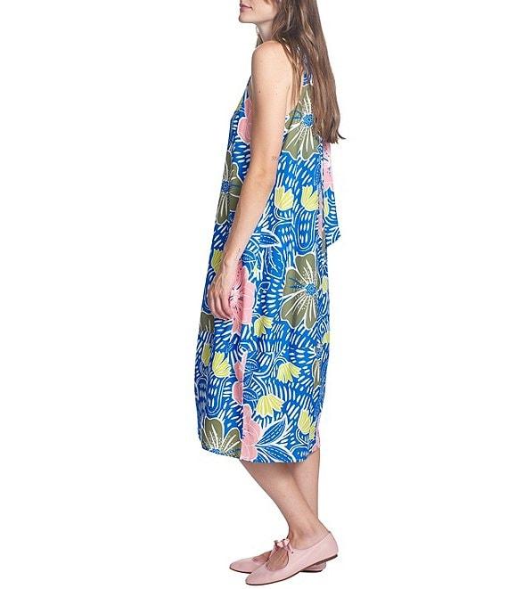 COREY LYNN CALTER Esmerelda Floral Crepe V-Neck Sleeveless Tie Back Midi Dress