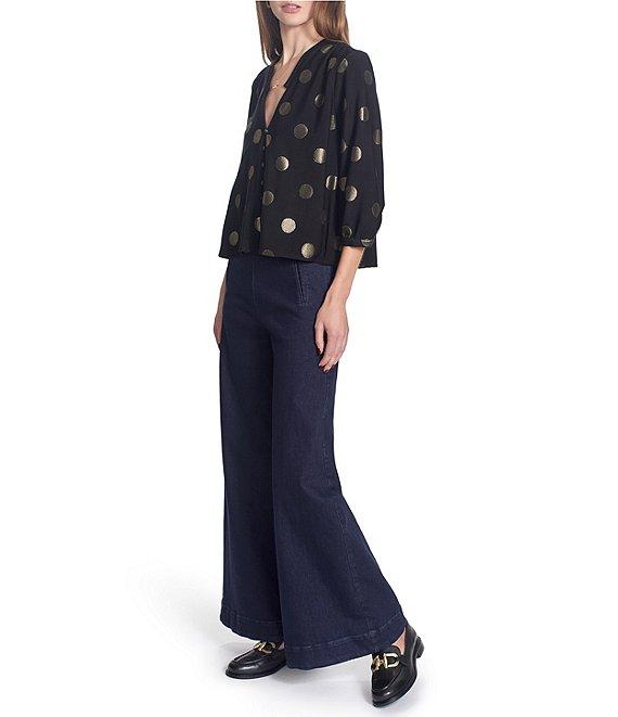 COREY LYNN CALTER Jessina Jacquard Metallic Dot V-Neck Shirt