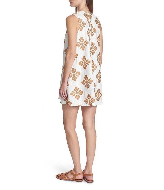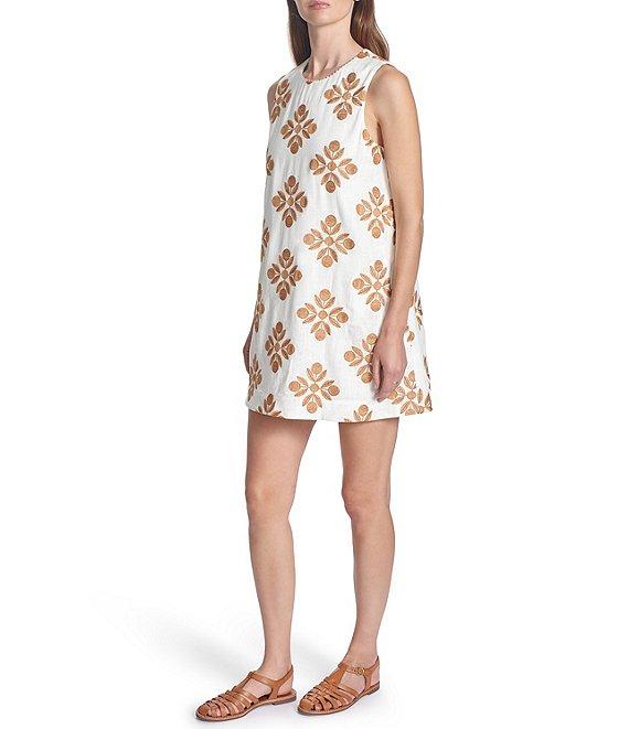 COREY LYNN CALTER Veruca Woven Embroidered Round Neck Sleeveless Mini Dress
