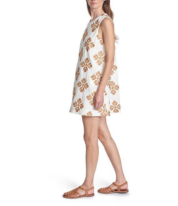 From Corey Lynn Calter, this dress features: Woven fabrication with embroidered pattern Round neckline Sleeveless Shift silhouette Straight hem Back button closure Approx. 34" length Cotton/linen Machine wash/line dry Made in the USA.