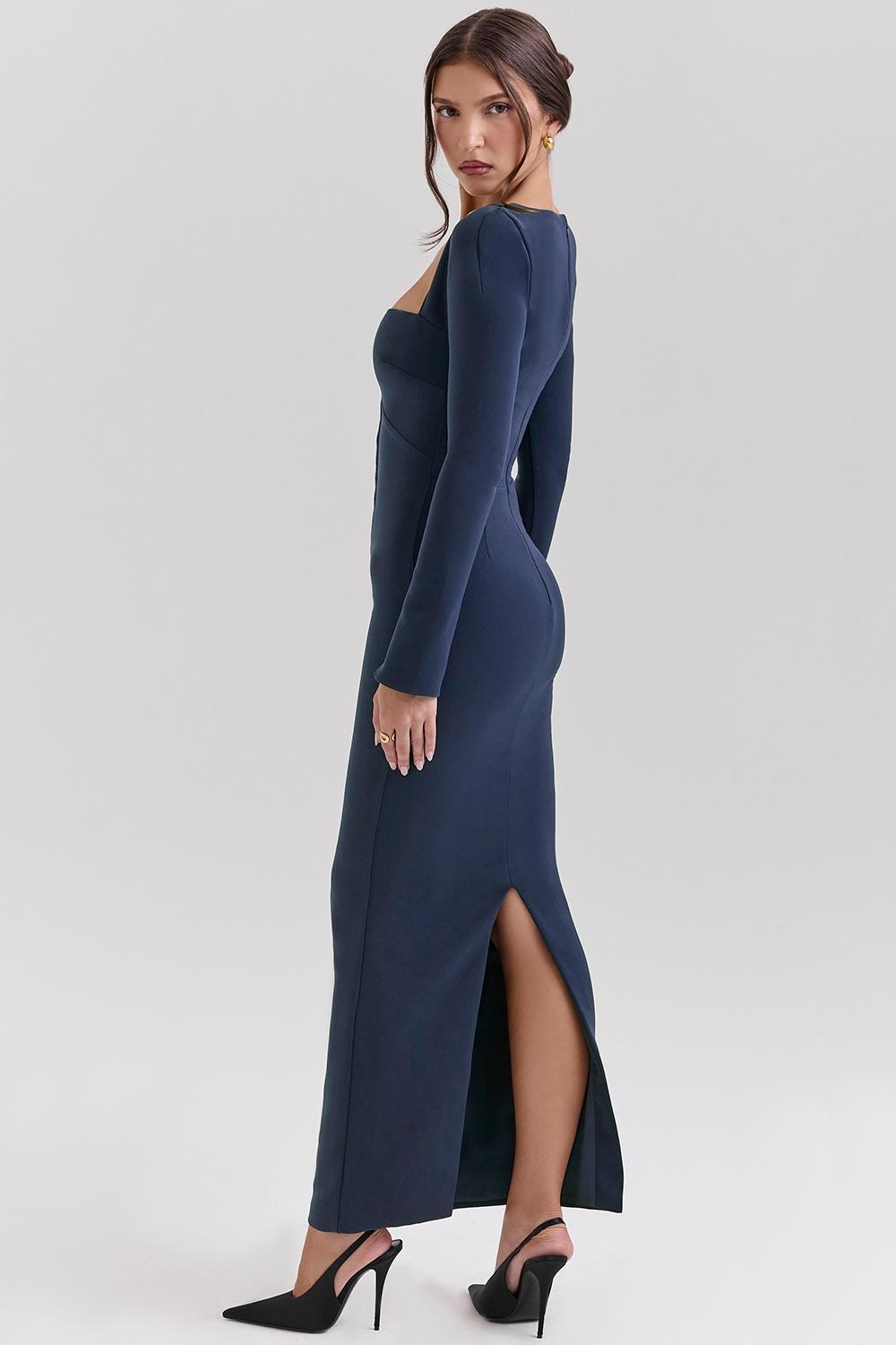 Meet the 'Corinthia' maxi dress in midnight blue - a body-hugging masterpiece that combines sophistication and allure.