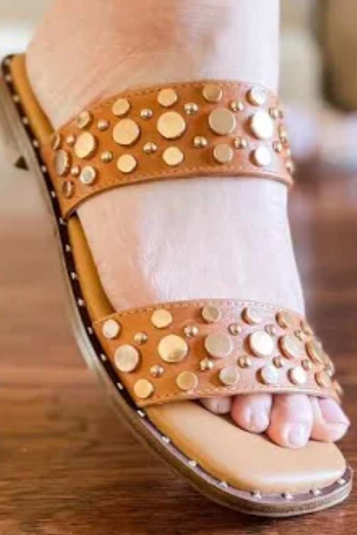 Introducing the new Magnet Sandals, the perfect footwear for the modern fashionista. These sandals come in a clear design with gold studded detailing that adds a touch of elegance to any outfit. With two clear straps that go over the top of your foot, these sandals are both stylish and comfortable. The cushioned sole ensures maximum comfort, while the tan sole adds a touch of sophistication to the overall design.