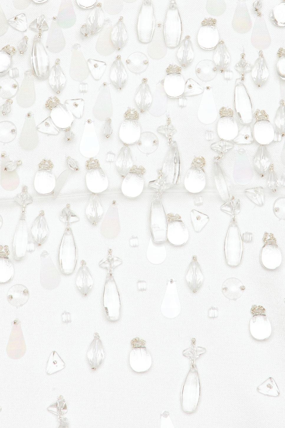Self: 85% polyester, 15% rayonLining: 95% polyester, 5% lycra. Dry clean only. Fully lined. Hidden back zipper closure. Satin fabric with crystal embellishments. Made in India. Revolve Style No. ROFR-WD989. Manufacturer Style No. HL25-10641.