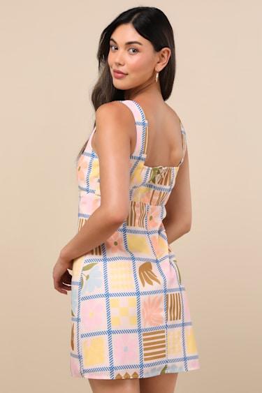 From Mediterranean vacations to strolls in La Jolla, this tile-inspired print dress is easy to wear over and over again this summer. Wide shoulder straps support the figure-skimming silhouette with a square neckline, a babydoll-style waist, and a chic mini hem. Hidden back zipper/clasp.