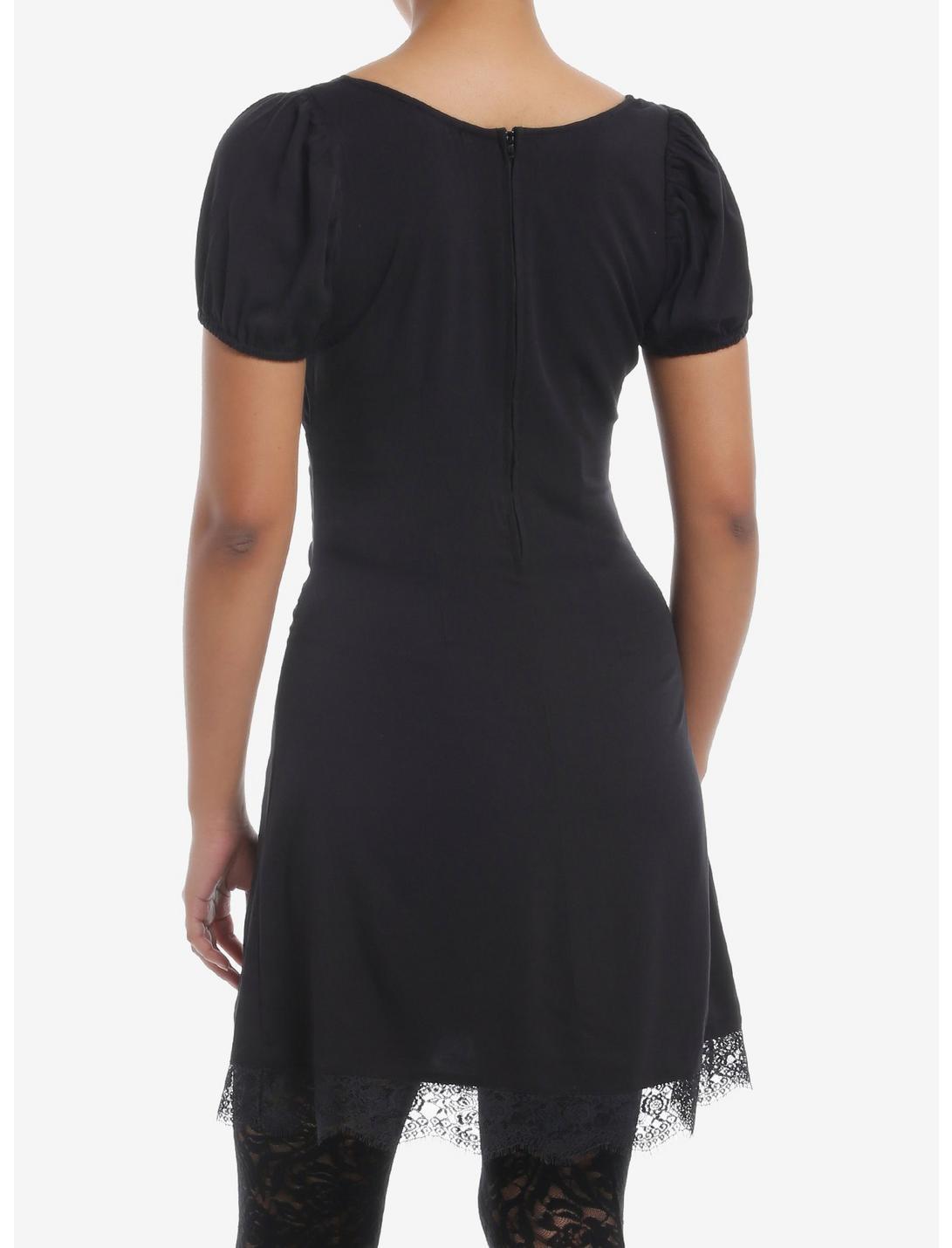 Cosmic Aura Black Lace Puff Sleeve Dress