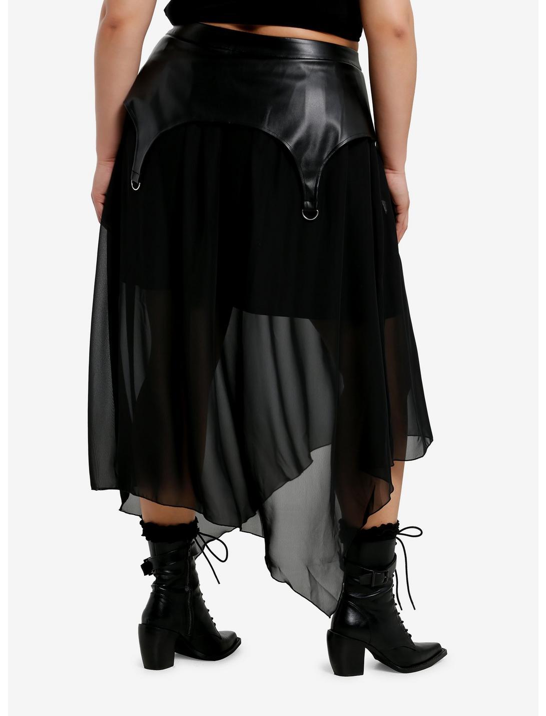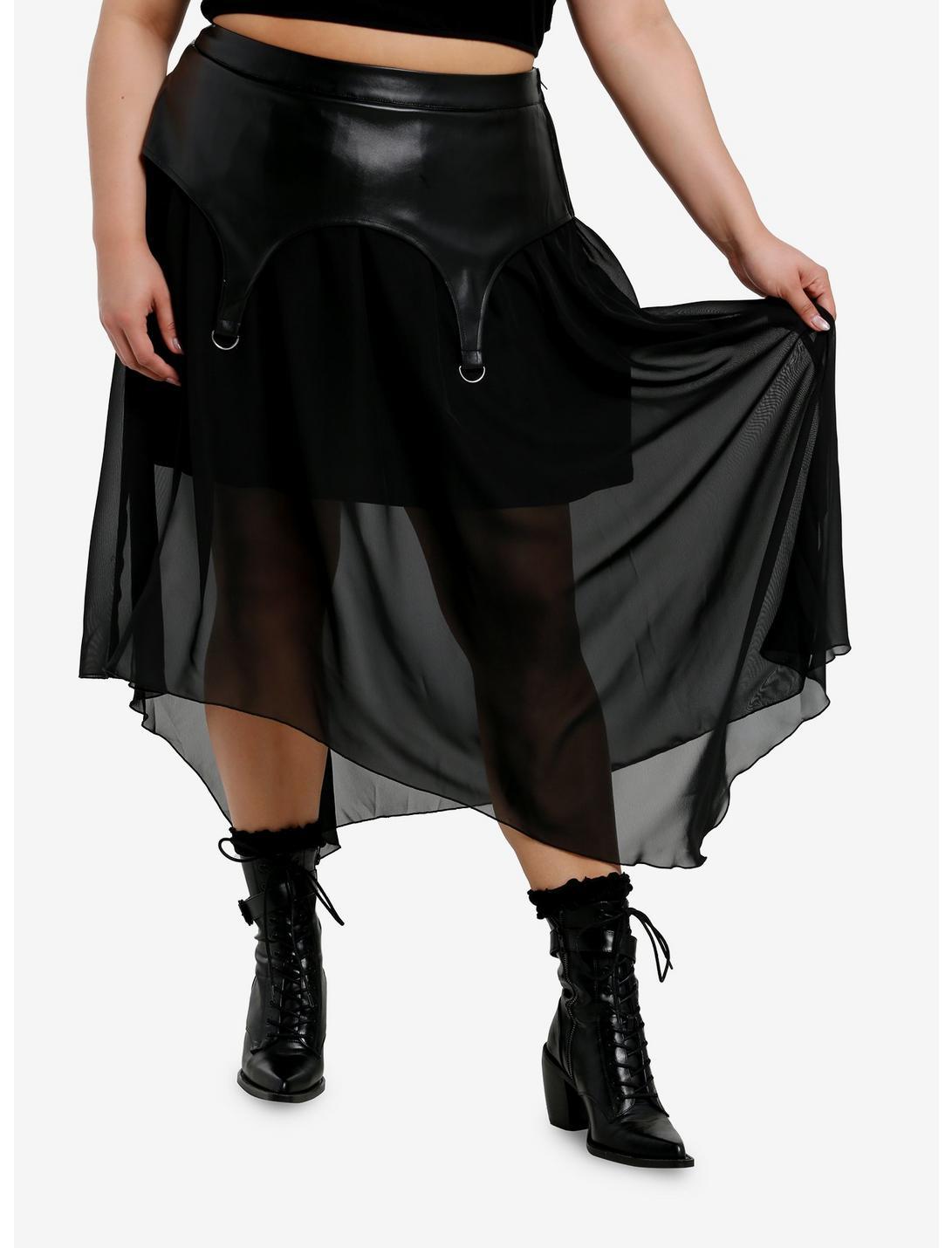 Cosmic Aura Faux Leather & Chiffon Maxi Skirt Plus Size