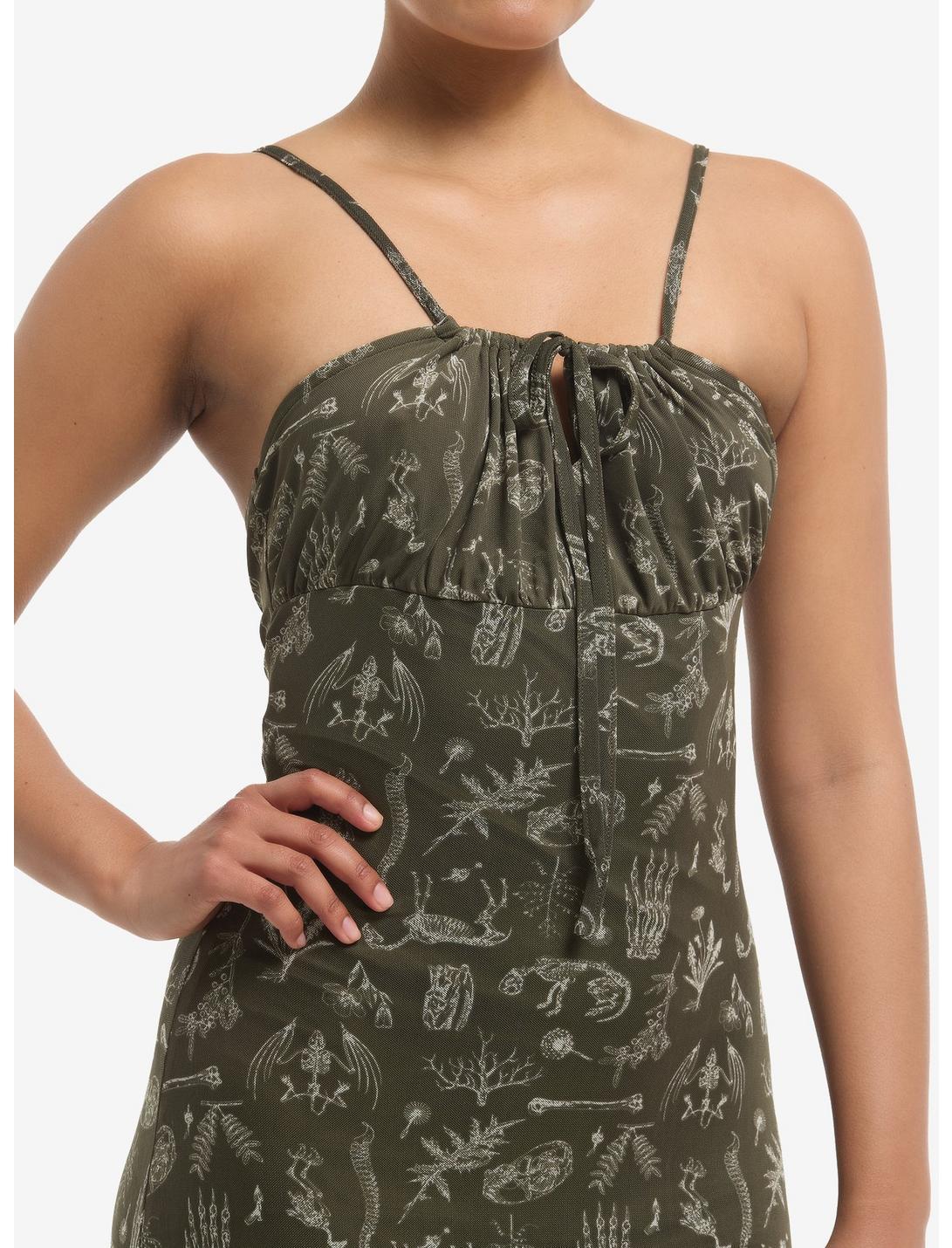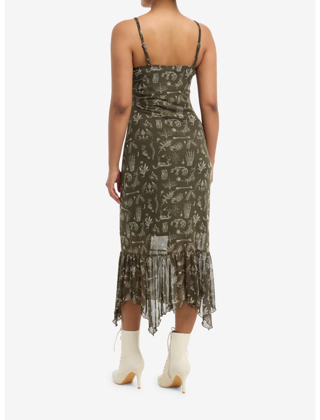 Cosmic Aura Olive Animal Skeleton Mesh Hanky Hem Midaxi Dress
