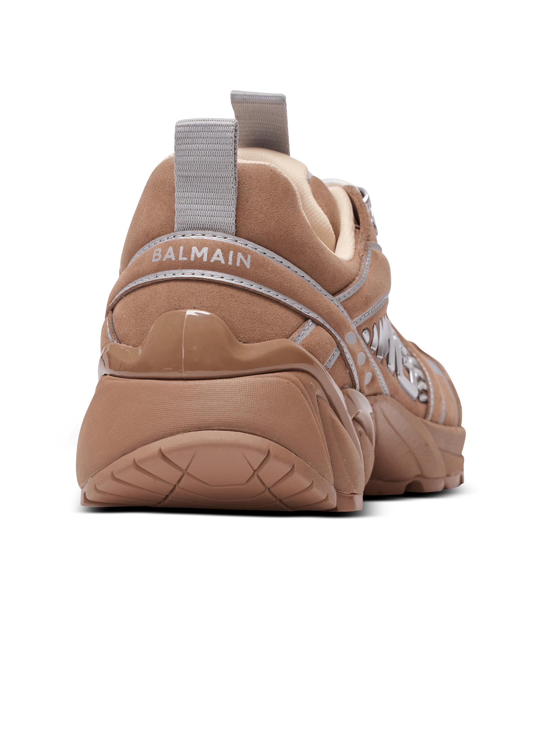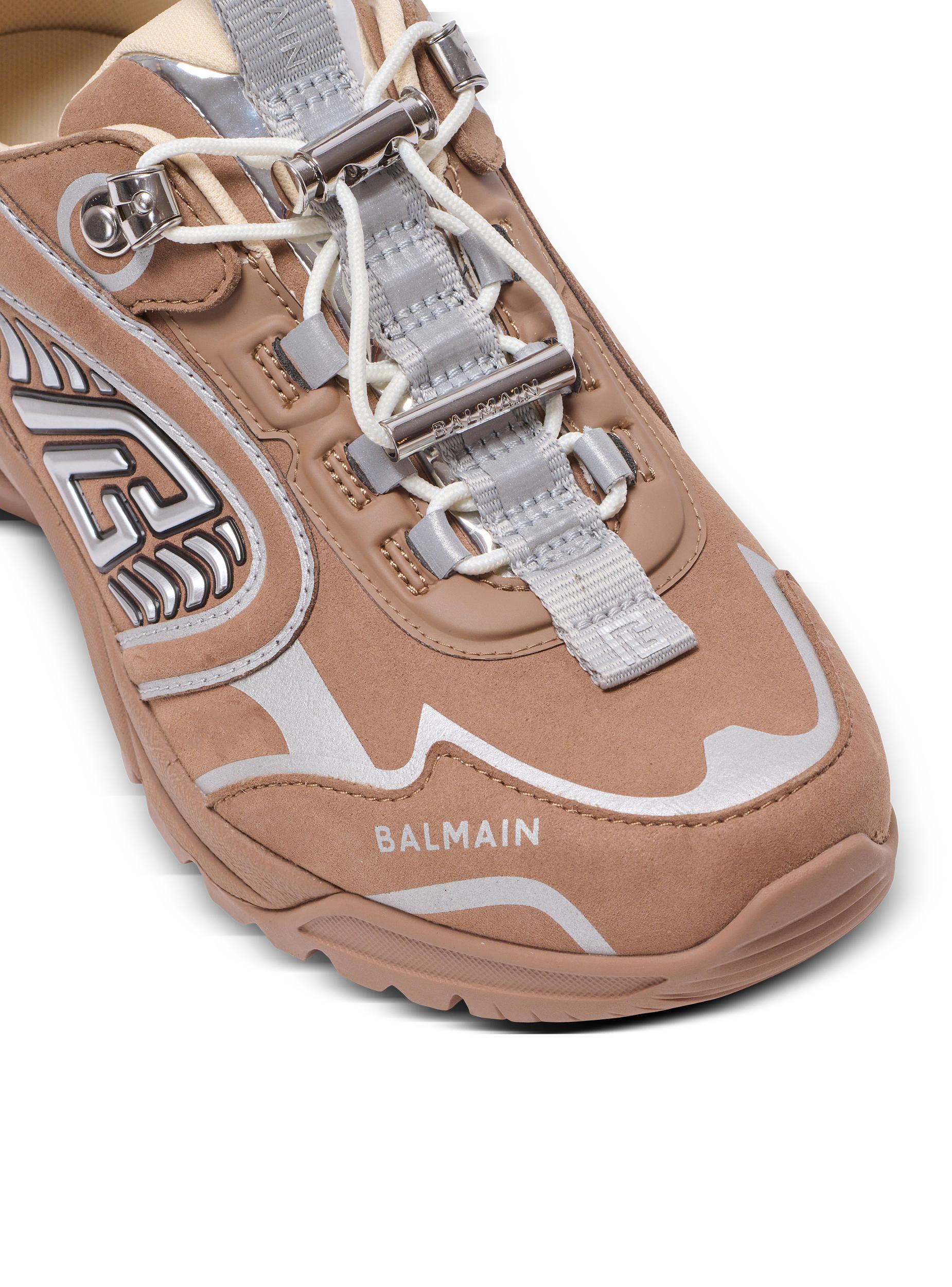 Cosmic Dust trainers made from suede and technical fabricsLace fastening with stopper, silver metal loops and engraved Balmain logoTongue with faux mirror leather detailBalmain and PB logos printed on the tonguePB logo embossed on the sidesBalmain logo printed on the front and backSculpted Vibram rubber outsoleTechnical fabric lining and insoleMain material: 52% polyurethane 48% polyamideMade in FranceItem: FN1VI733LSEY