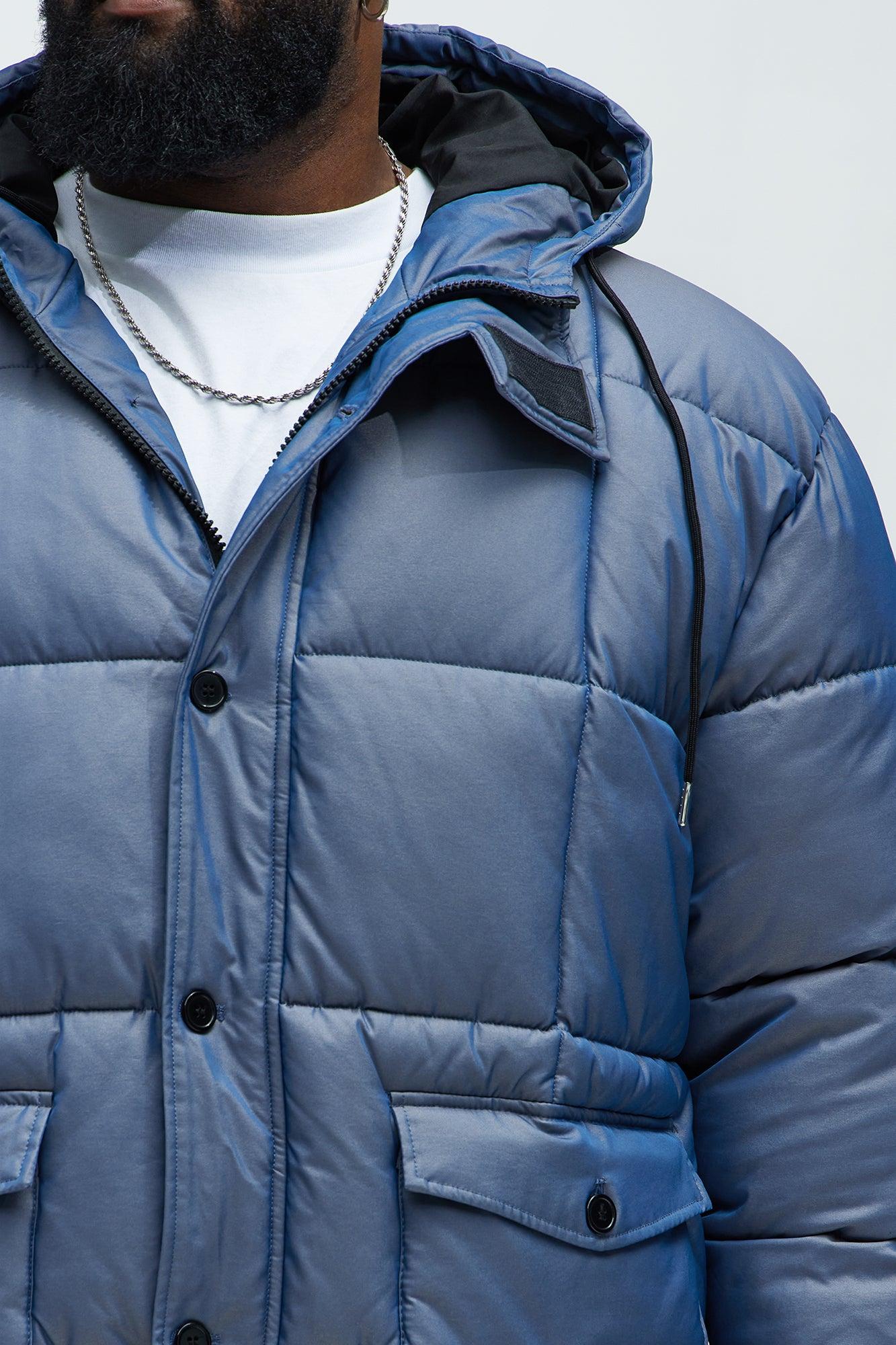 Available In Blue. Mock Neck With Velcro Detail Hooded Full Front Zipper Closure Front Full Snap Zipper Cover Front Hand Pockets With Button Closure Cuffs With Button Closure Long Sleeves Shell: 55% Nylon, 45% Polyester Padding: 100% Polyester Lining: 100% Polyester Imported California Proposition 65WARNING: Cancer and Reproductive Harm - www.P65Warnings.ca.gov.