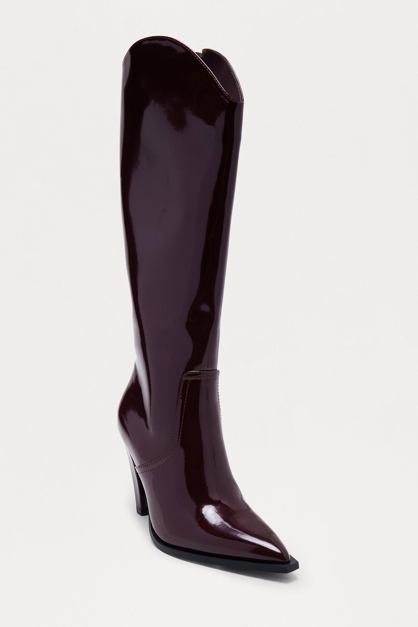 Cosmo Faux Patent Knee High Boots - Burgundy Female