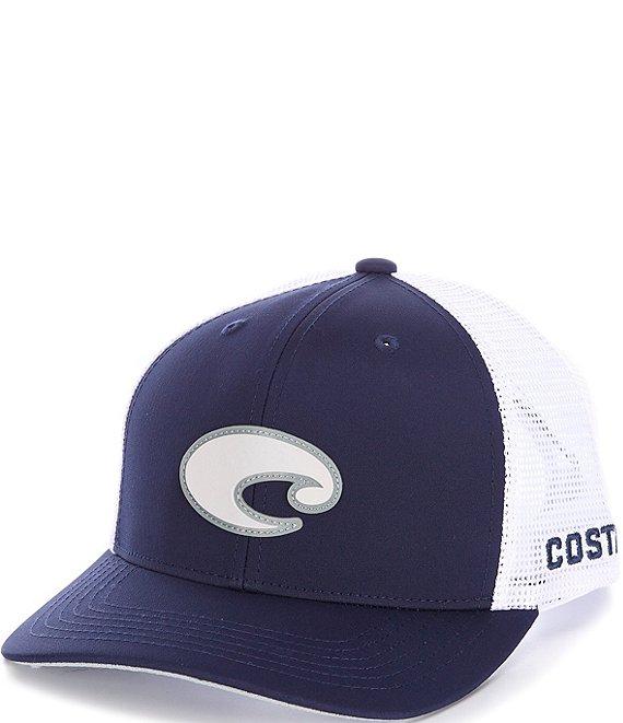 From Costa, this hat features: six-panel construction structured styling mid profile rubber "C" logo patch snap back trucker silhouette polyester front mesh back spot clean Imported.